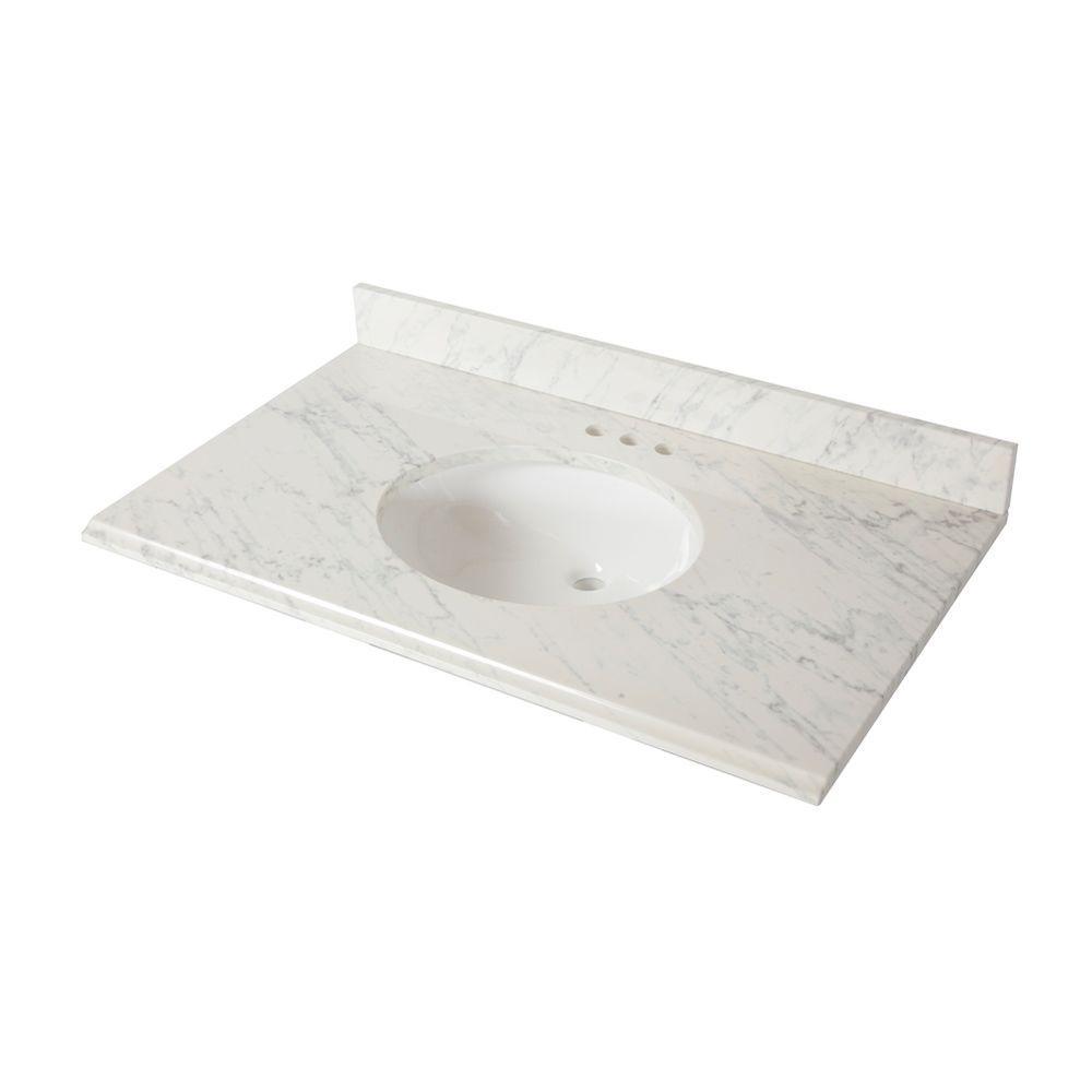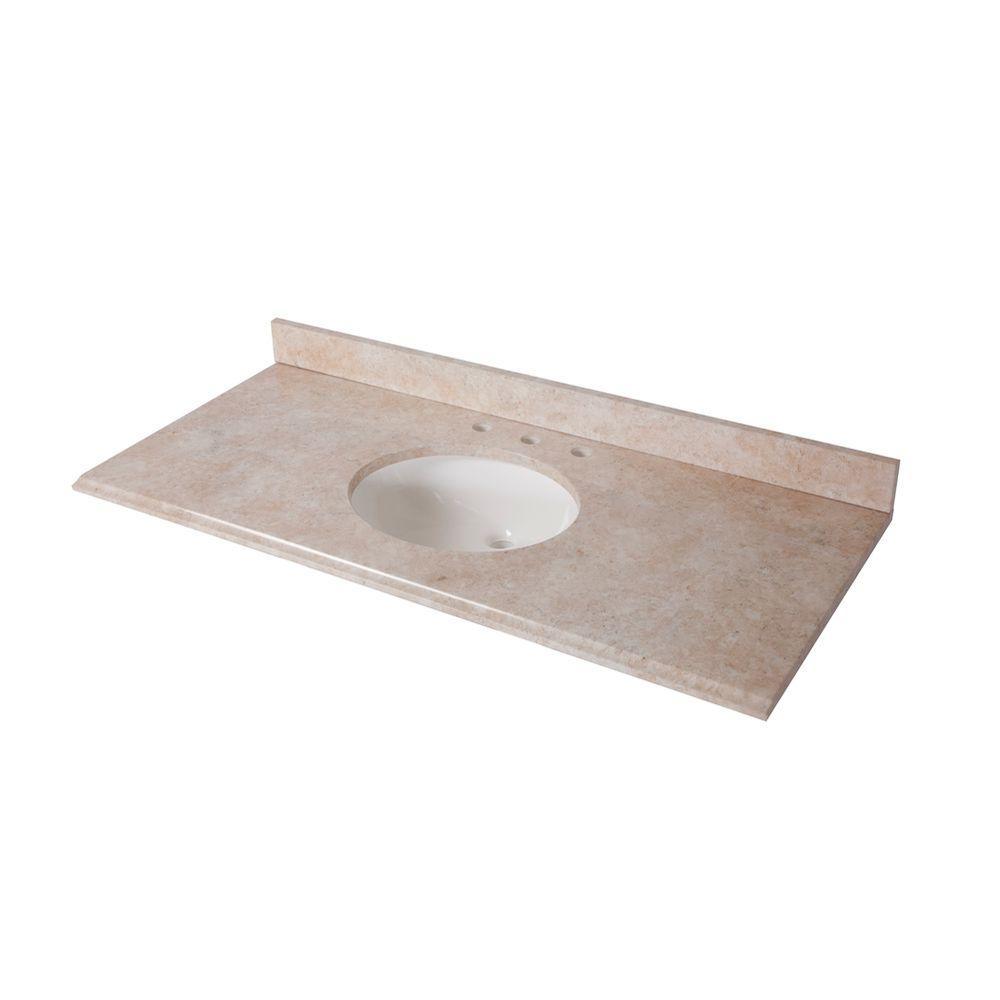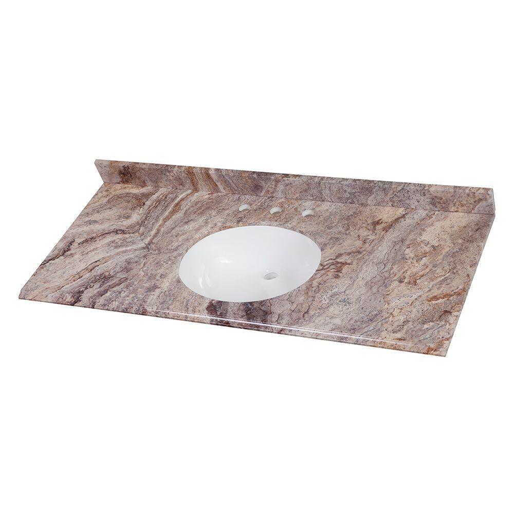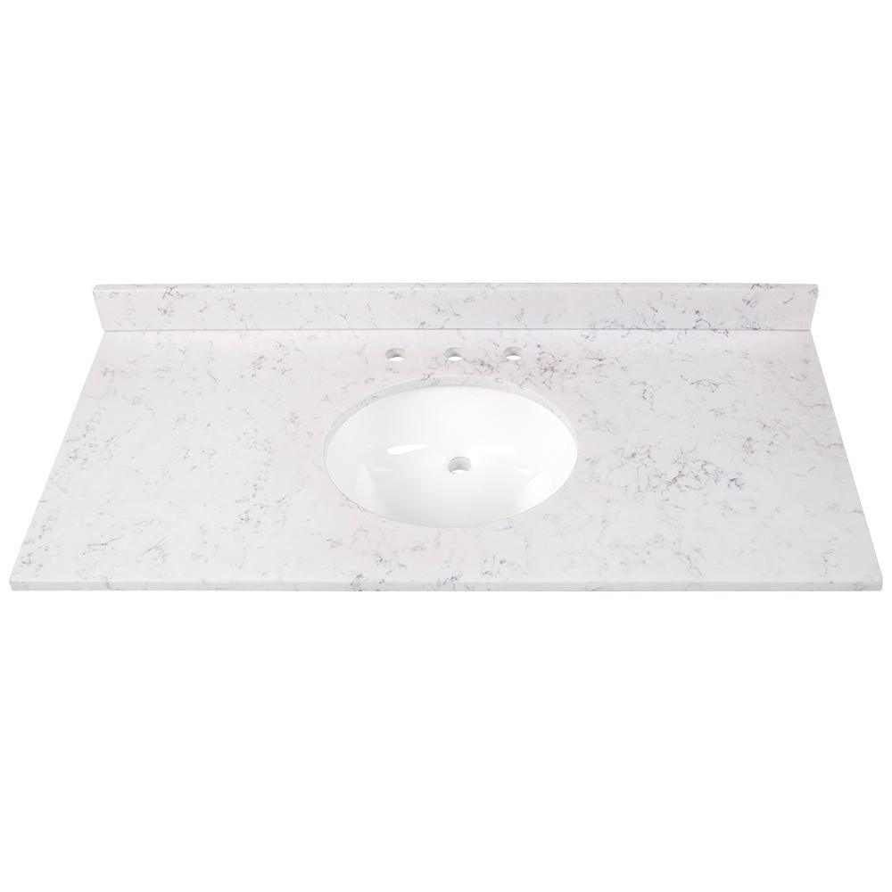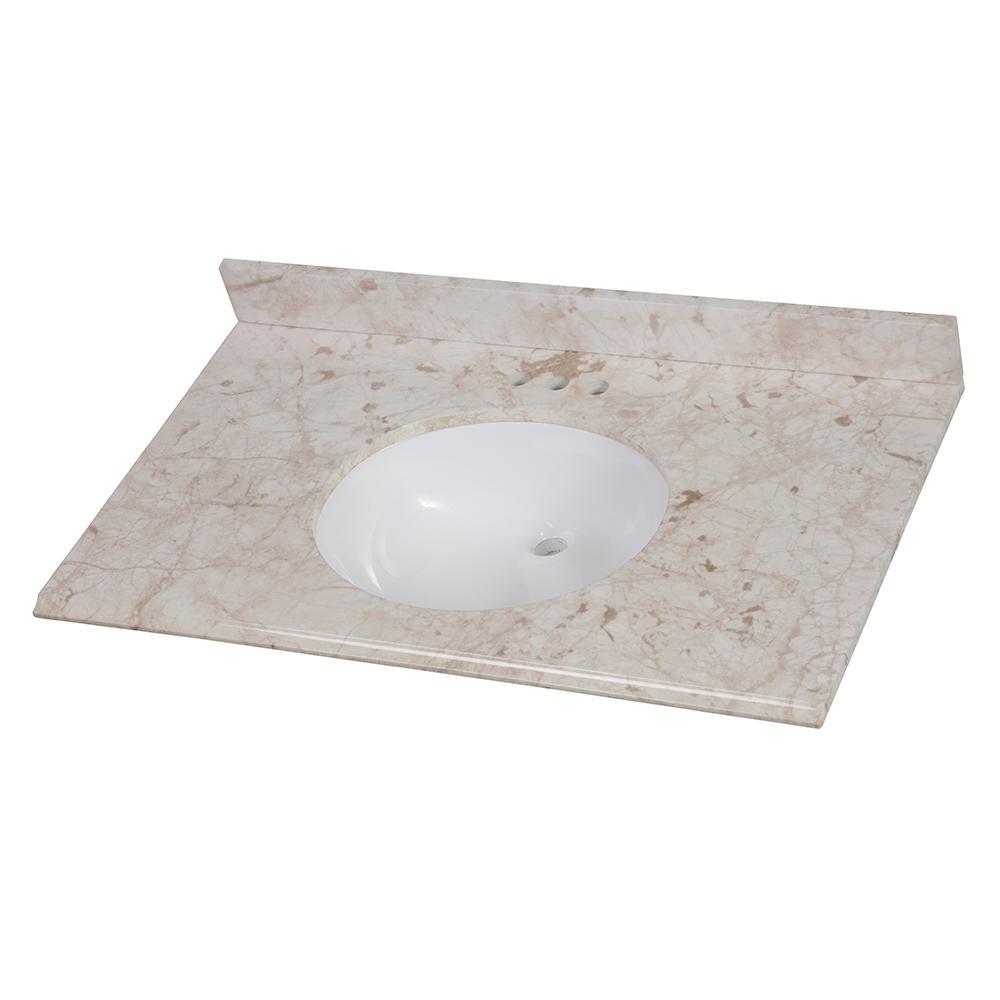 This St. Paul Stone Effects top in Cascade is designed for a 30 in. x 21 in. vanity. Easy to install, it features the look of natural stone without the difficulties such as sealing associated with other materials. Cascade is a very light, airy design sure to brighten any space.