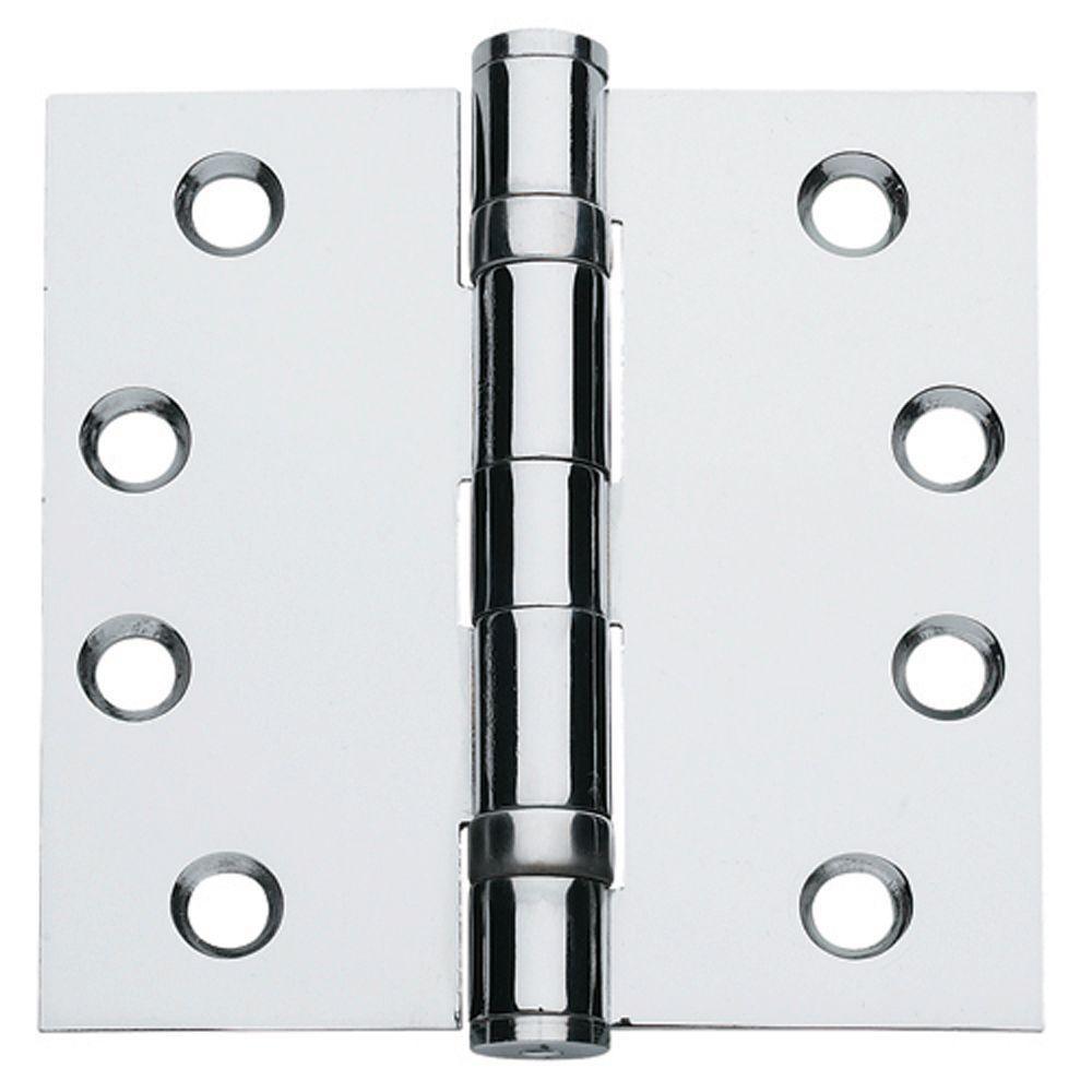 This model of the Global Door Controls 4.5 in. x 4.5 in. ball bearing non-removable pin steel hinges comes in a bright chrome finish and is intended to function as a heavy duty commercial grade door hinges. Security Non-Removable Pin for exterior outswing doors prevents the hinges pins removal. For use on metal or wood doors.