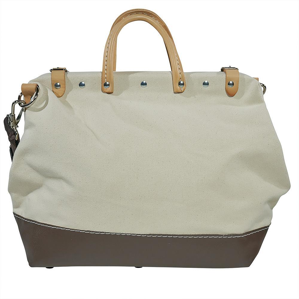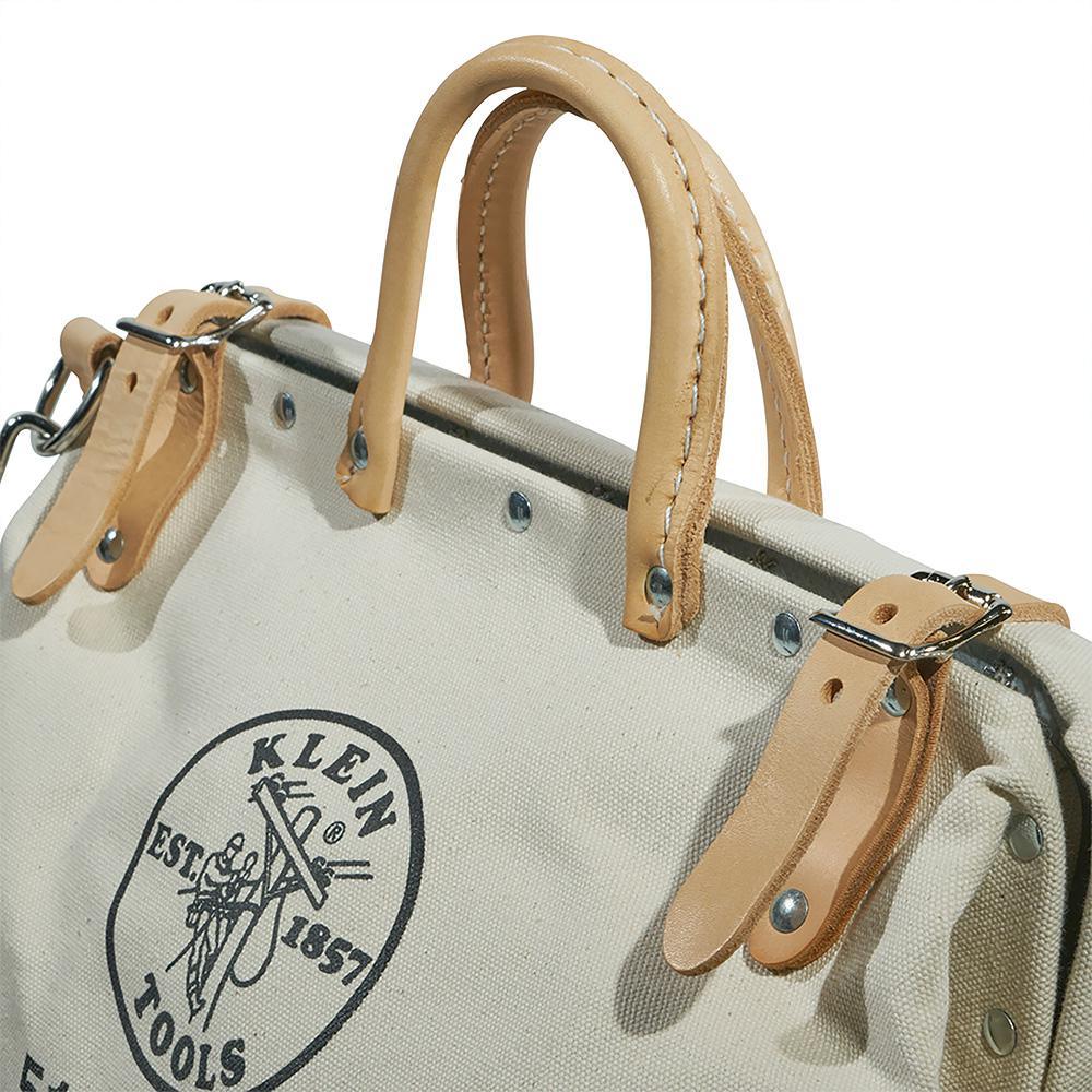 This deluxe canvas tool bag features lots of interior pockets to organize your tools. Made of heavy-duty canvas, this bag will stand the test of time. A detachable shoulder strap can be adjusted for a comfortable fit. With the moisture-resistant vinyl bottom and non-scratch studs on the base, you can put this bag down without worrying about wear and tear.
