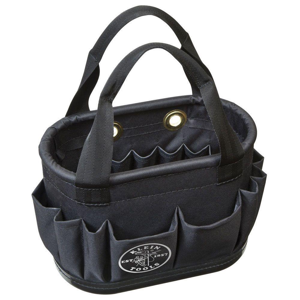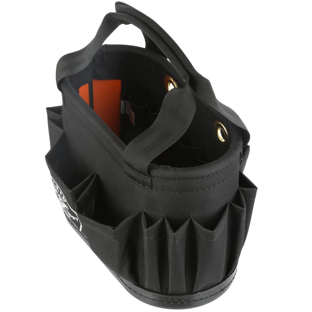 This heavy-duty lineman bucket transfers your tools safety and securely. Constructed of rugged denier polyester to resist wear and tear on the jobsite. 29 pockets to keep your tools organized and secure.