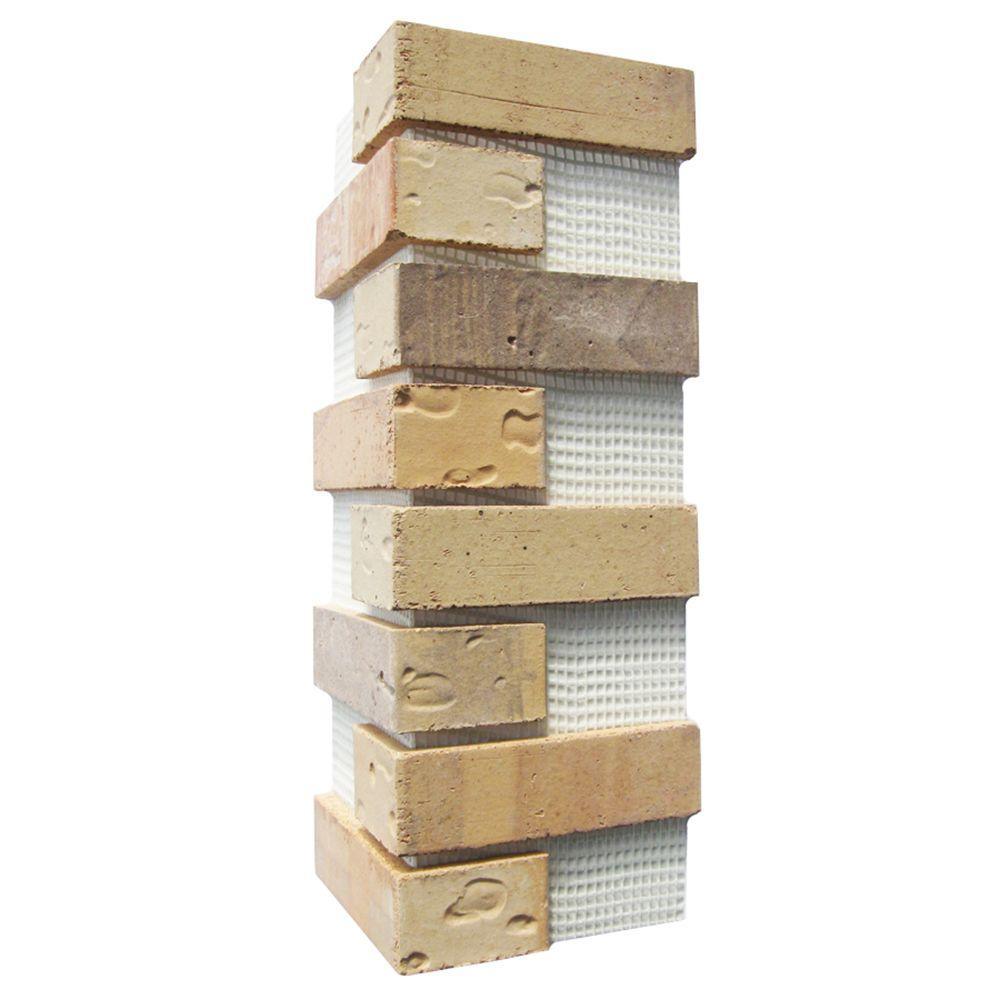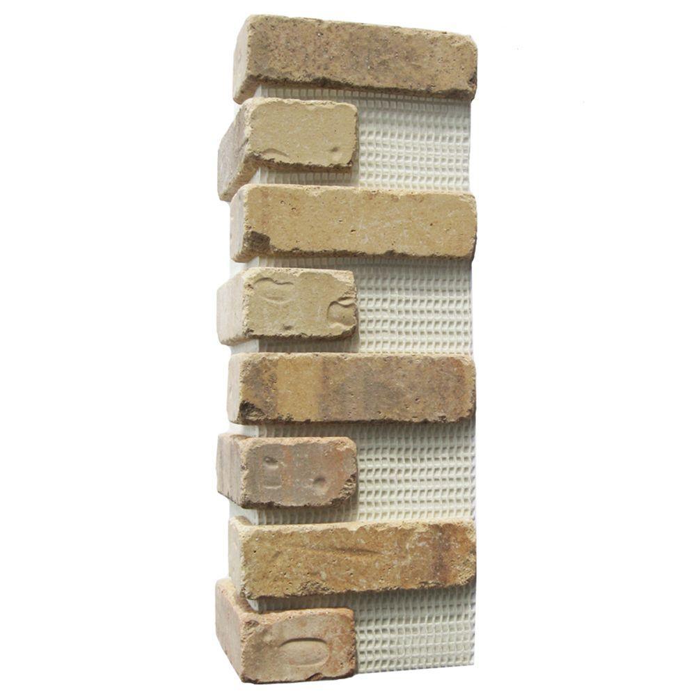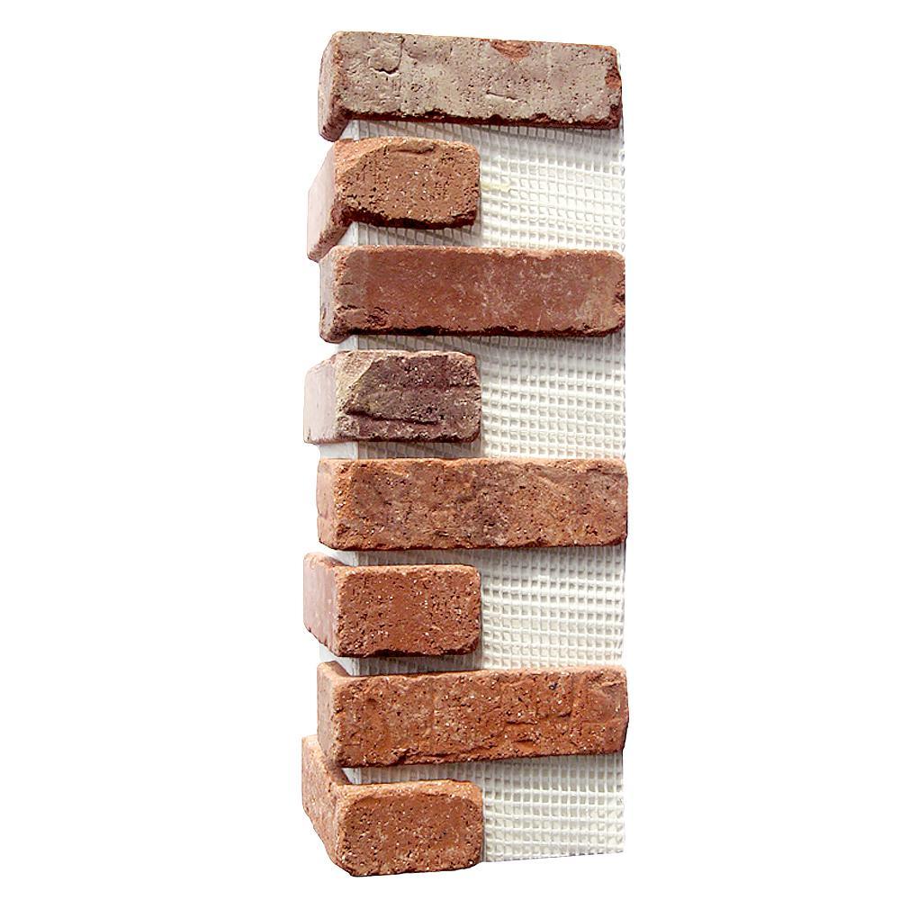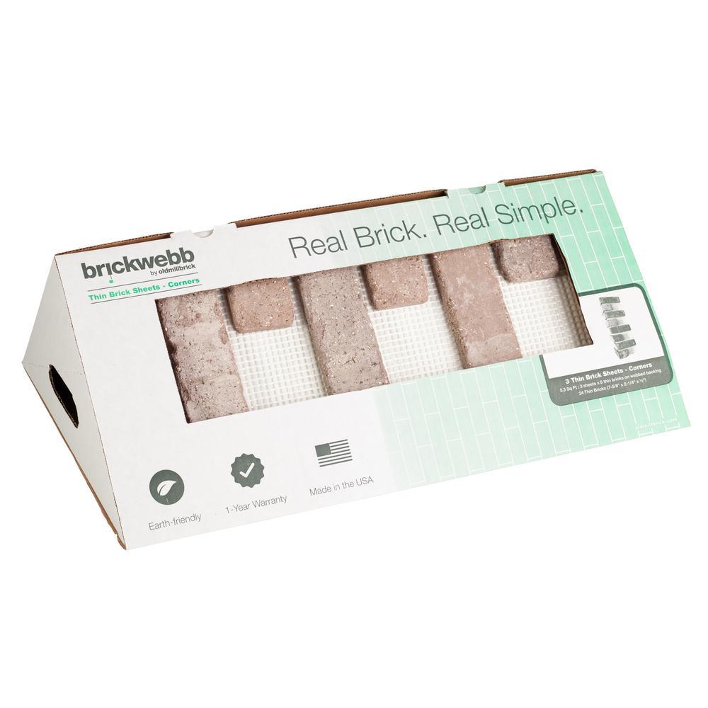 Brickwebb Rushmore Thin Brick Sheets - Corners are expertly crafted from authentic kiln fired clay brick, ensuring the highest quality. These thin brick sheets are designed for convenient DIY installation, with the brick already attached to durable fiberglass web sheeting for consistent spacing. Using this patented web sheeting, you can easily install the brick, ensuring perfect spacing and enhanced durability that will outlast the competition. With a box containing three sheets, each measuring 21 in x 15 in, you'll have a total of 24 thin brick corners, providing 5.3 linear feet of coverage. Add style, value, and comfort to your home or business with this quick and easy installation option. The traditional masonry look can be installed in places where full brick cannot, and can be easily cut with an angle grinder or tile wet saw. This product meets ASTM C1088, Type TBS, Grade Exterior specifications, making it a top choice for your brick veneer needs.