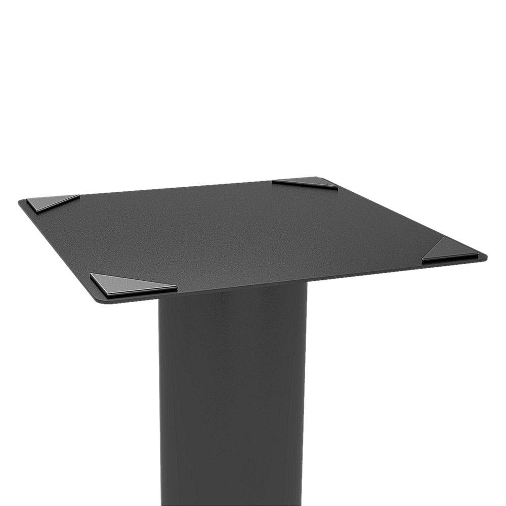 Atlantic, Inc. 77335799 the Atlantic Bookshelf Speaker set is comprised of 2 speaker stands. 4 adhesive strips and 4 spike studs provide 2 surface options. The Speaker plate is 6 inches by 6 in. to hold larger bookshelf speakers securely. The stand sits on 4 spike feet.