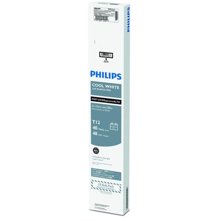 For the home or office, the Philips 40-Watt Cool White Linear Fluorescent Light Bulb (F40T12/CW SUPREME) is a great lighting source. It provides cool white light with an output of 2600 lumens. This bulb features ALTO technology for low mercury content. It's a more environmentally friendly lighting solution than traditional fluorescent bulbs.