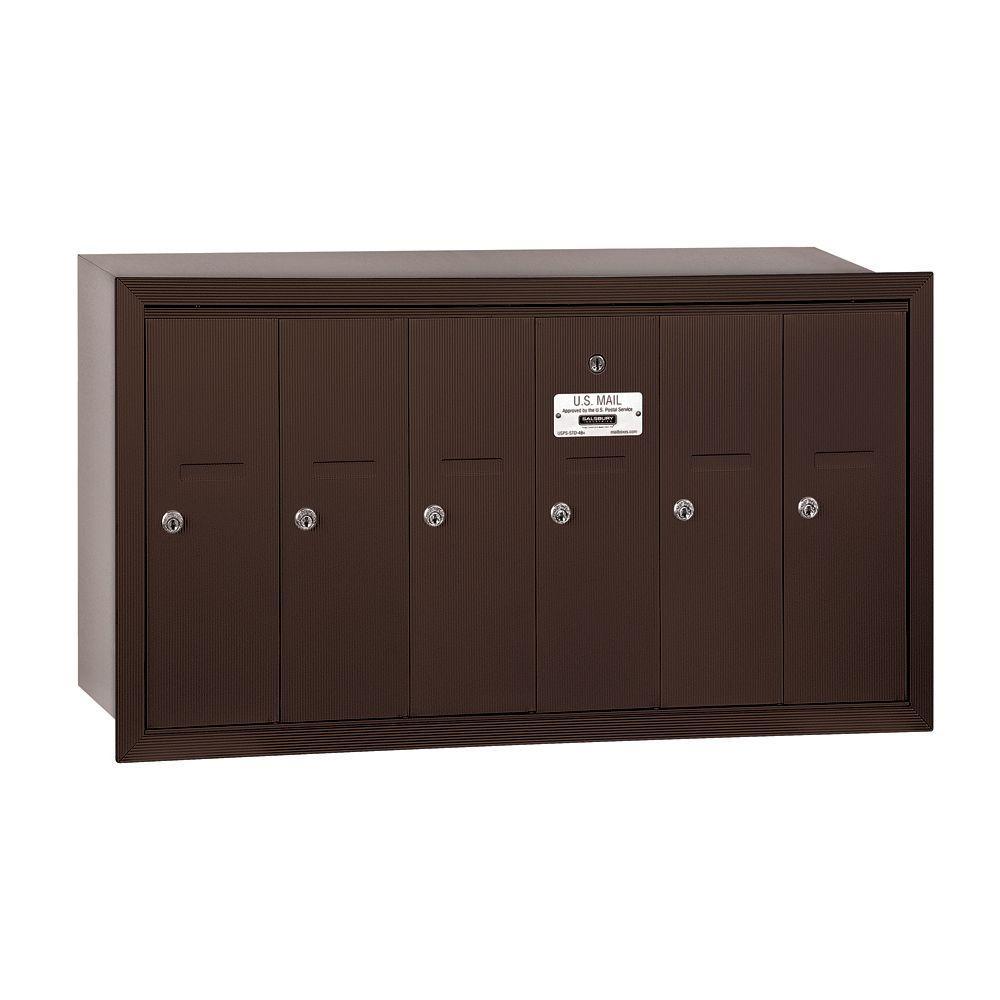 3500 Series Aluminum Recessed-Mounted Private Vertical Mailbox with 6 Doors