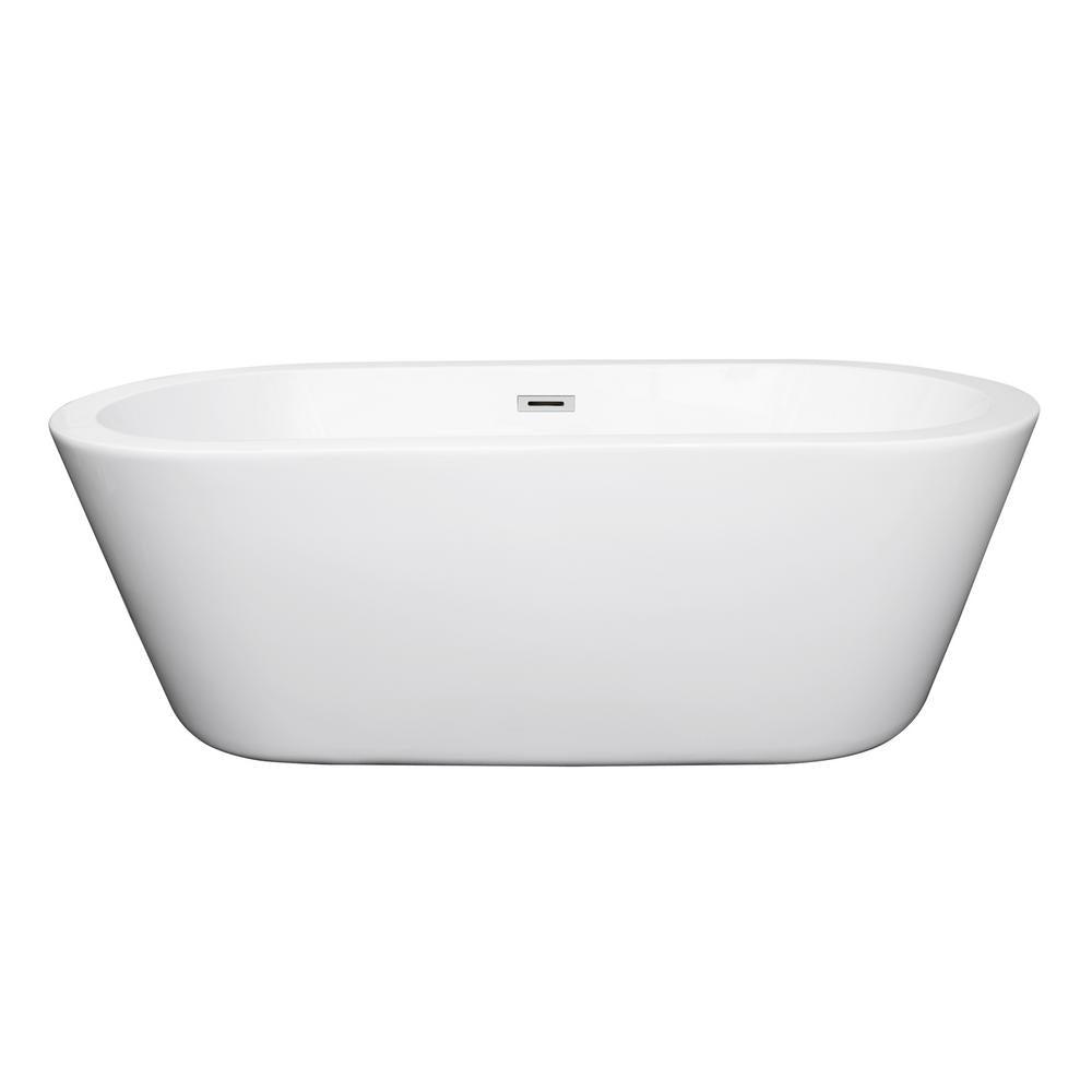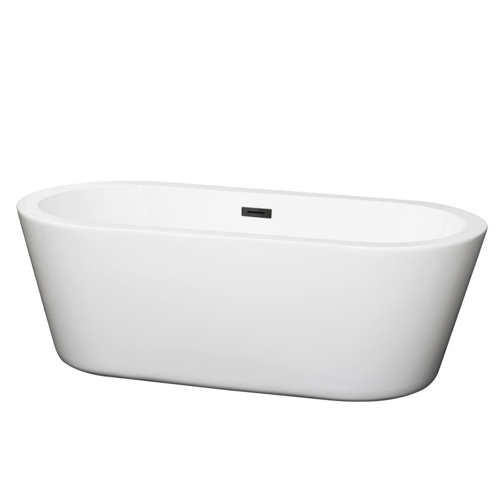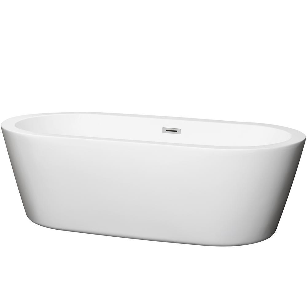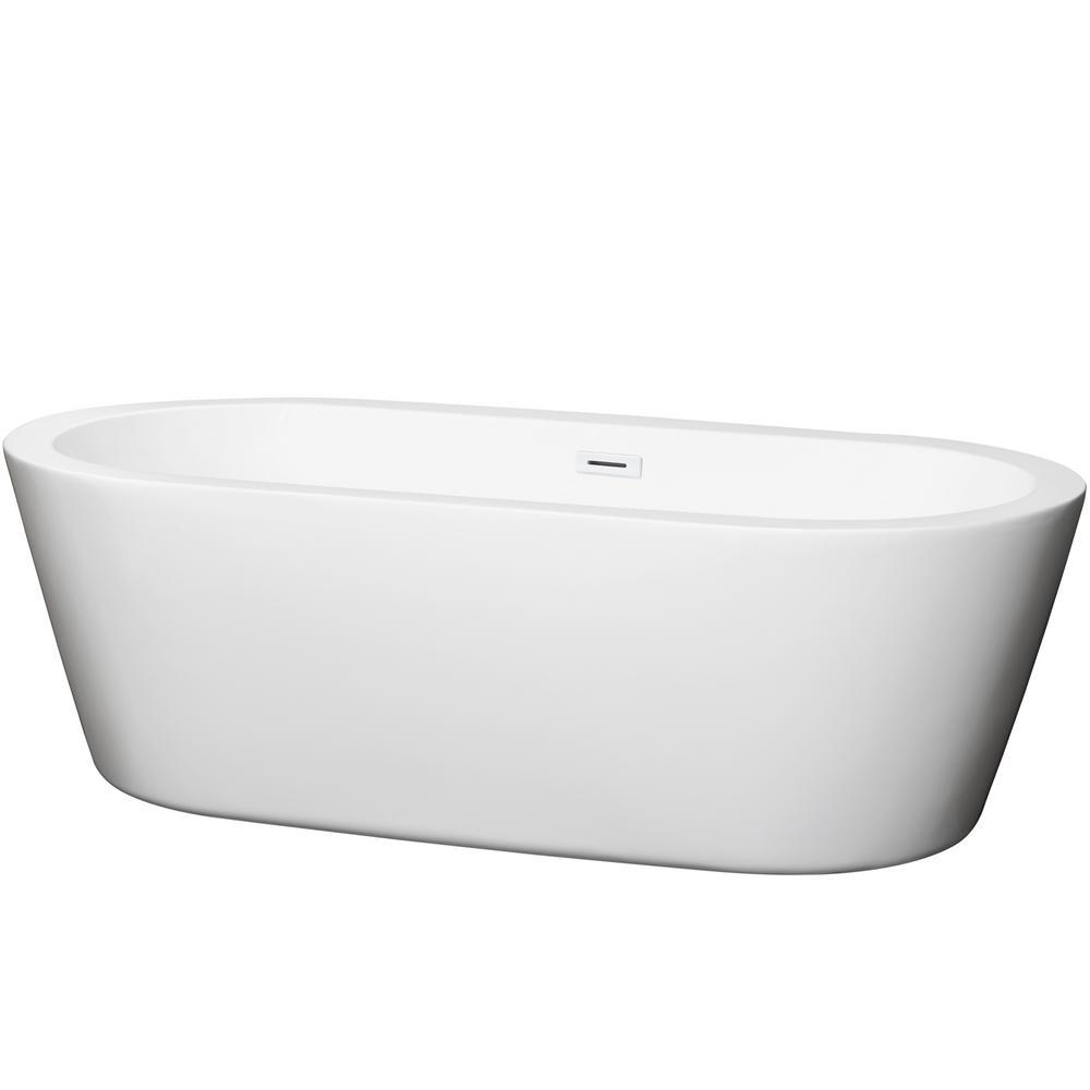 Mermaid 67 in. Acrylic Flatbottom Center Drain Soaking Tub in White