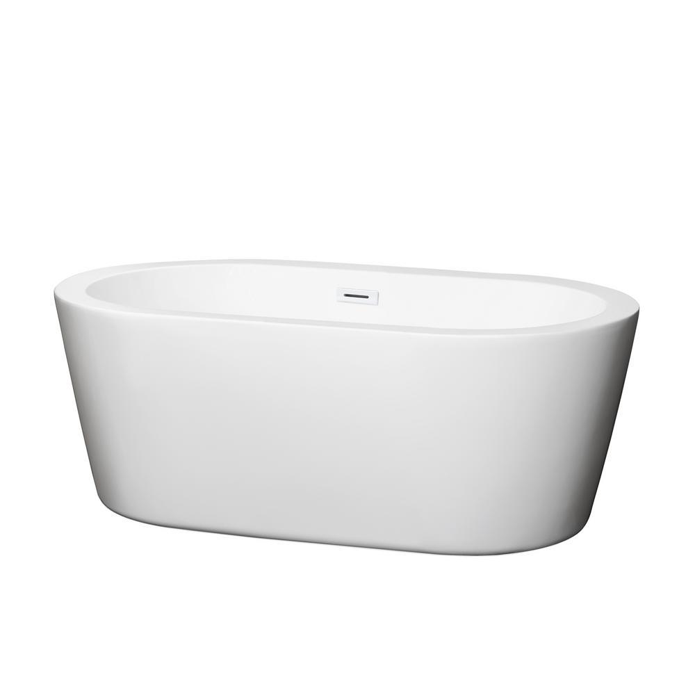 Deeper than your standard tub with a chic rounded look, the Mermaid 5.58 ft. Center Drain Soaking Tub in White is the perfect choice for smaller baths. Acrylic construction is strong, light and warmer to the touch than typical enamel and steel tubs. Included drain allows for quick and easy drainage.