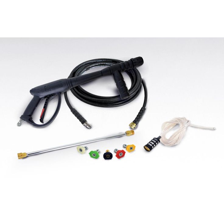 Five quick connect nozzle tips: 0, 15, 25 and 40-degrees and soap to use for a variety of cleaning applications