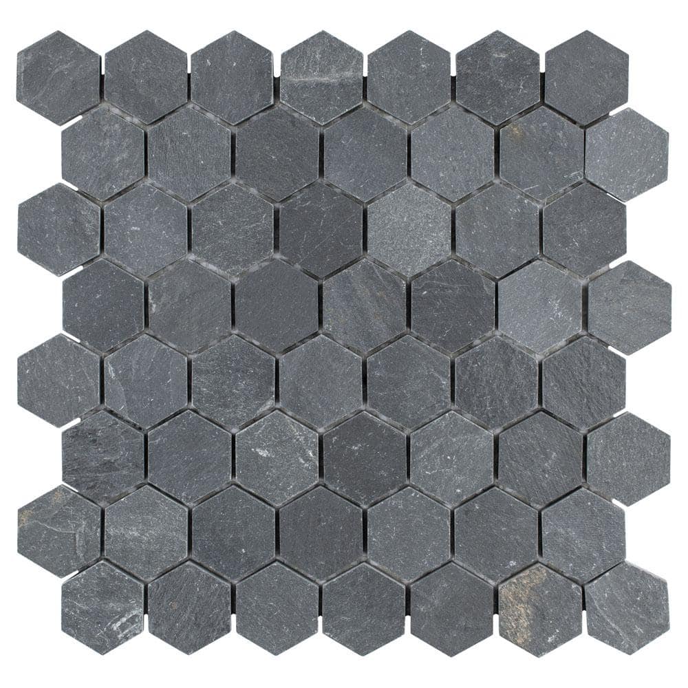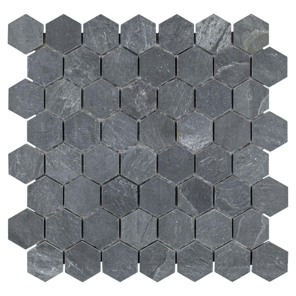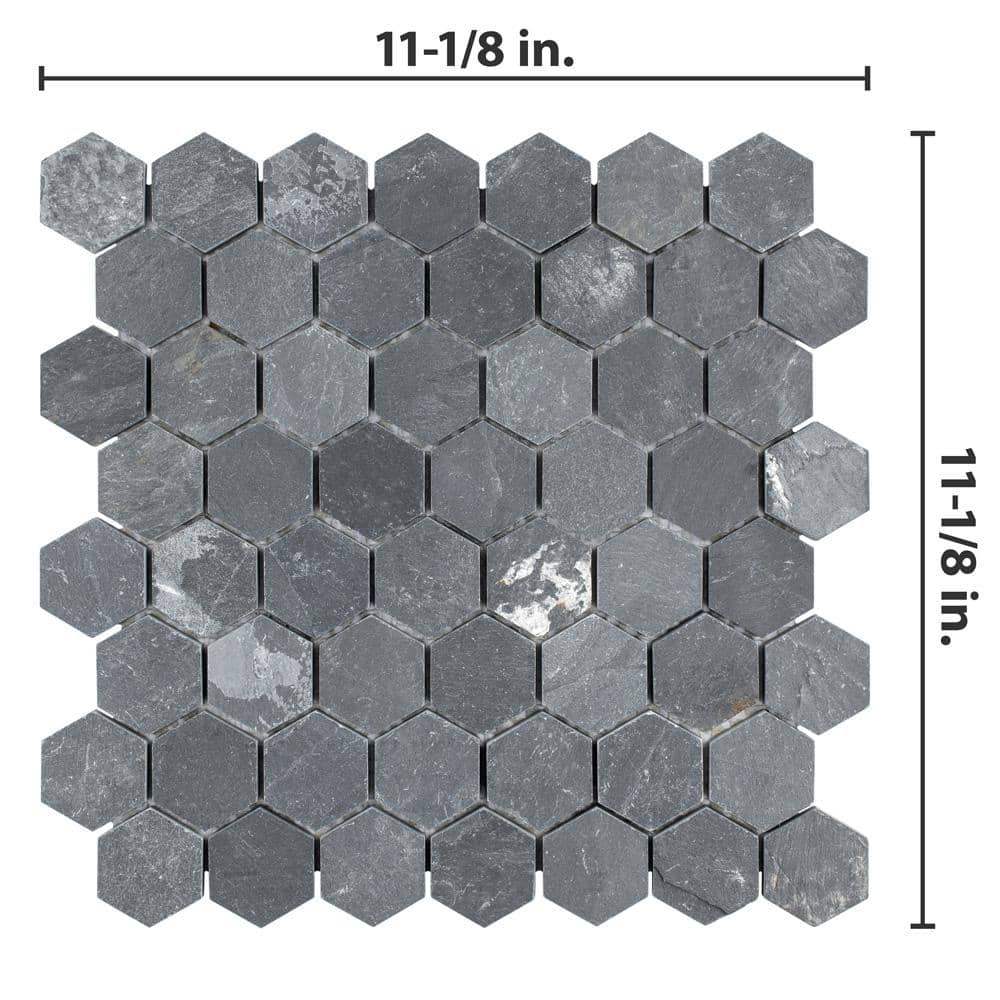 Crag Hex Black Slate Hexagon Mosaic Tile, 11-1/8 in. Sheet