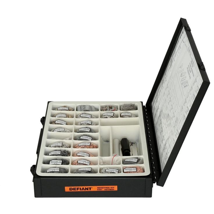 This Defiant Rekey kit is perfect for locksmiths, or multi-property owners. It kit comes with everything you need to rekey a Defiant lock. The metal casing provides durability while the individual slots allow for perfect separation of all pins and tools.