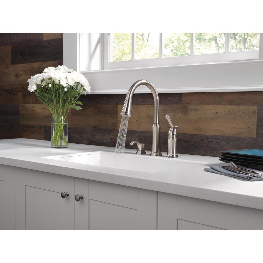 Enjoy style and convenience with the Delta Lakeview Single-Handle Pull-Down Sprayer Kitchen Faucet in Stainless. A valve with a tough diamond coating combines with InnoFlex PEX waterways for a faucet that was built to last up to five million uses and doesn't leak. MagnaTite docking keeps the pull-down spray wand firmly in place with a powerful integrated magnet.