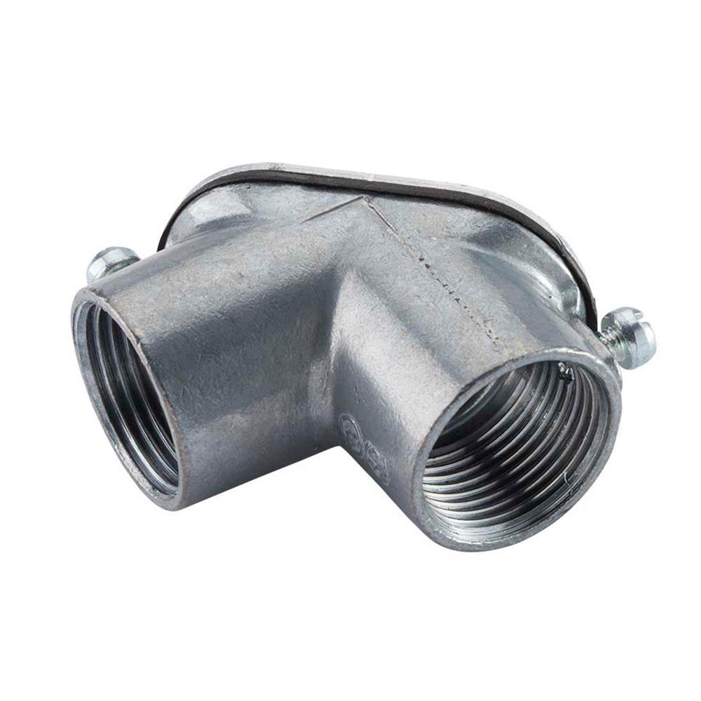 Use this EMT/Rigid-to-EMT/Rigid combo elbow as a wire pulling elbow to facilitate wire pulling through a sharp bend in arum of EMT or threaded Rigid or IMC conduit. Removable cover provides easy access to facilitate wire pulling. Not listed for wet location.