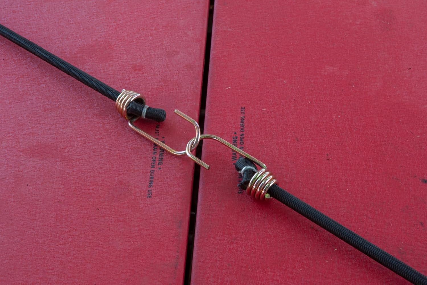 A: The elastic cord stretches to fit and can be clipped to various anchor points for adjustable tension.