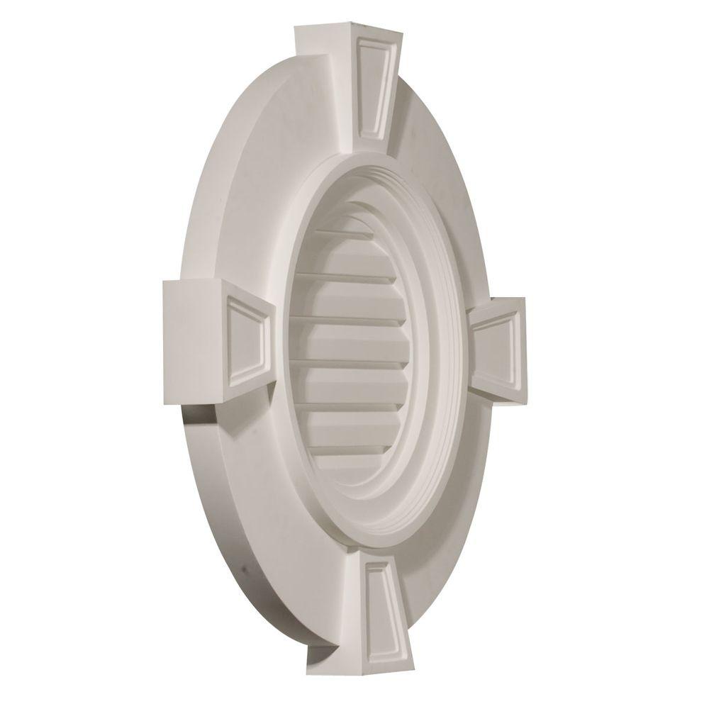 24 in. W x 24 in. H x 2-1/4 in. P round gable vent with keystones, decorative