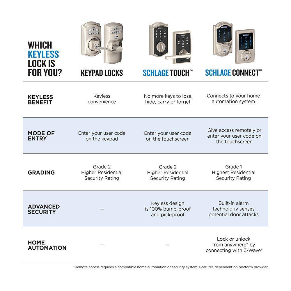 The Schlage Century Satin Nickel Connect Smart Lock with Alarm combines advanced features and compatibility with your home automation system, allowing you to control your home from anywhere and freeing you from the hassles of keys. With the chic, delicate curve of the Century trim, the lock pairs well with interior Schlage hardware - especially when wrapped in our versatile Satin Nickel finish. Plus, it's been designed and tested with strength and durability in mind.
