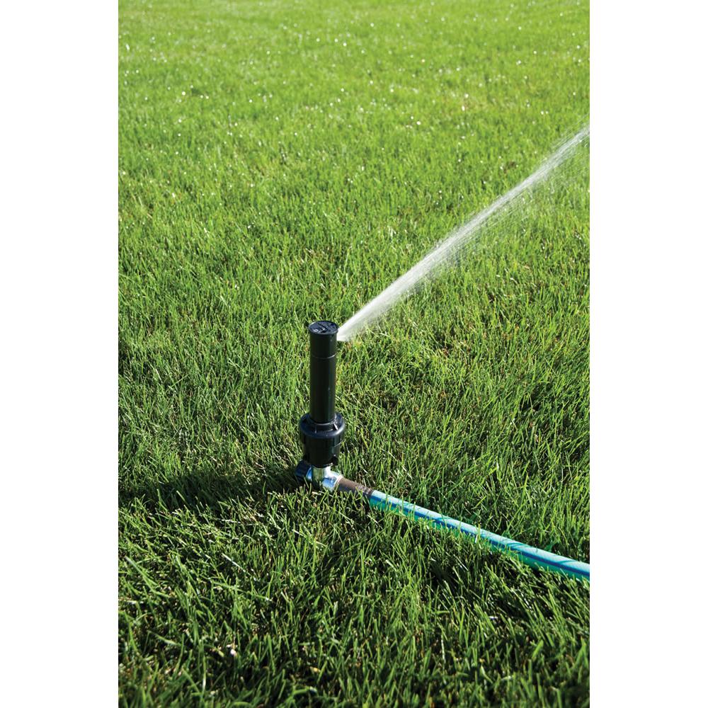 Ideal for watering large shrub areas, ground cover and hillsides, this versatile Rain Bird performer is now offered in a hose-end connected model. It features the same proven gear drive and Rain Curtain nozzle technology used in all Rain Bird rotors, producing larger water droplets that avoid windblown overspray and assure uniform coverage. Other quality advances include simple screwdriver adjustments at the top for arc and spray distance.