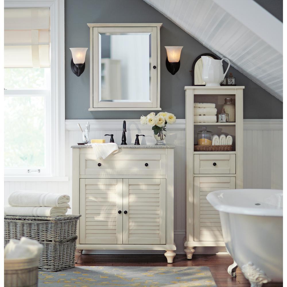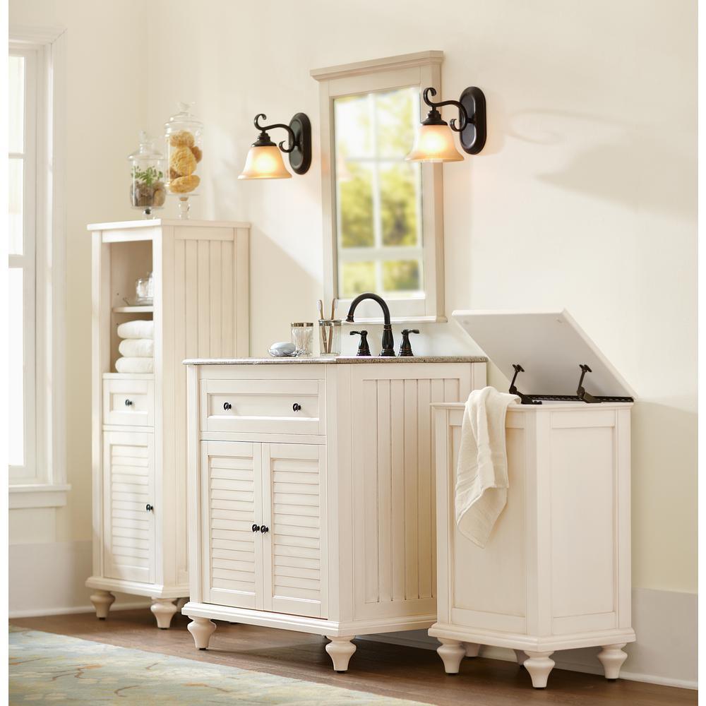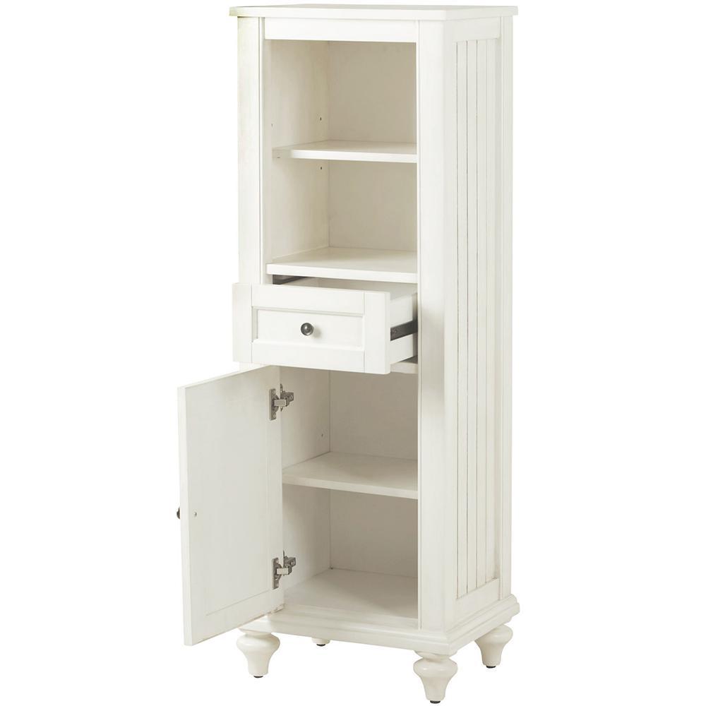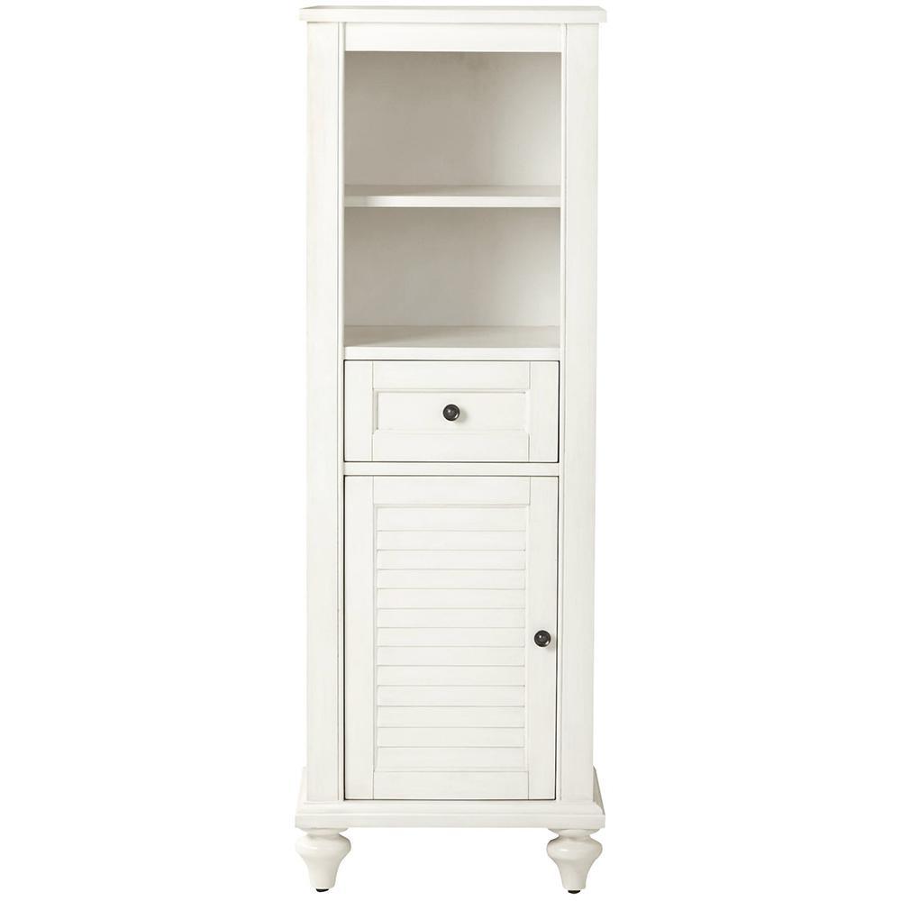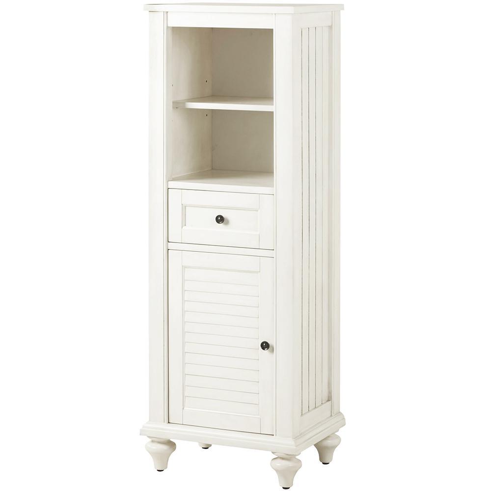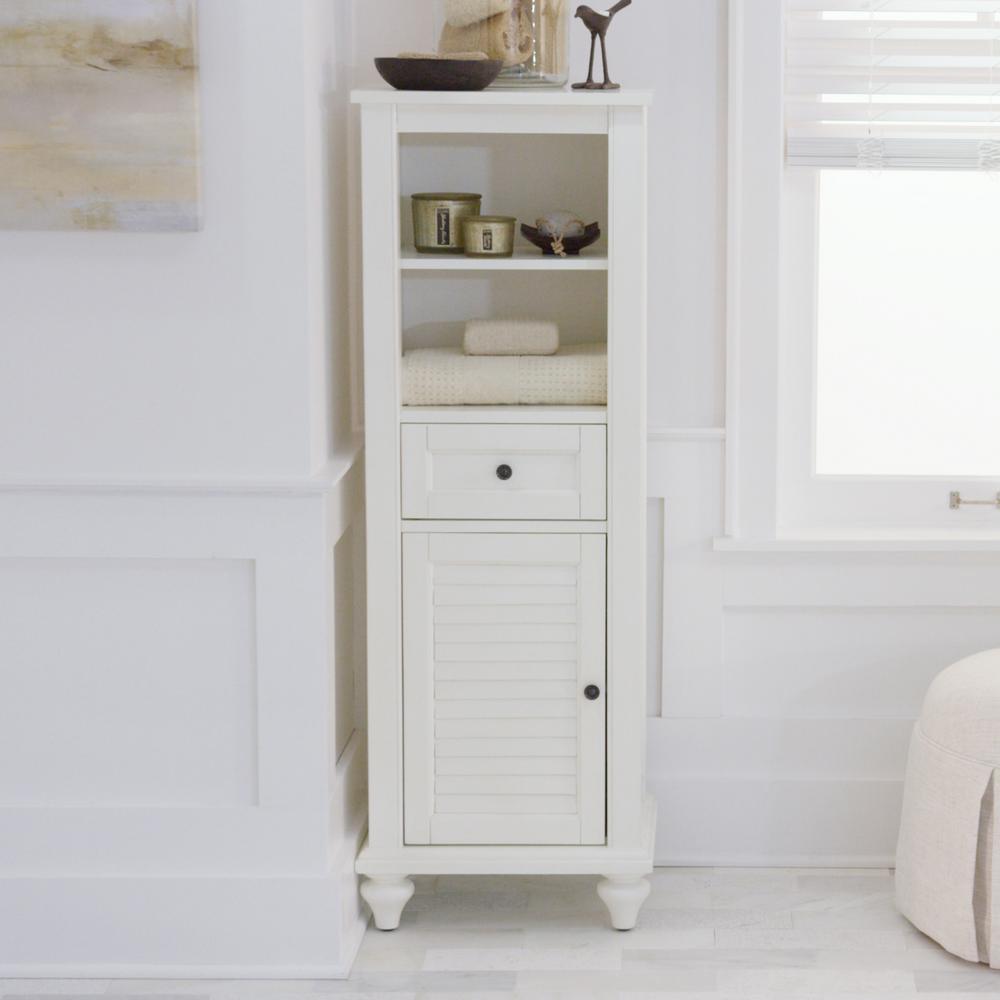 A shutter door, drawer and panels give our Hamilton Linen Cabinet character. With a white finish, this bath linen cabinet will blend easily into existing decor styles. You'll find it easy to grab towels and washcloths once they have a new home in the bathroom.
