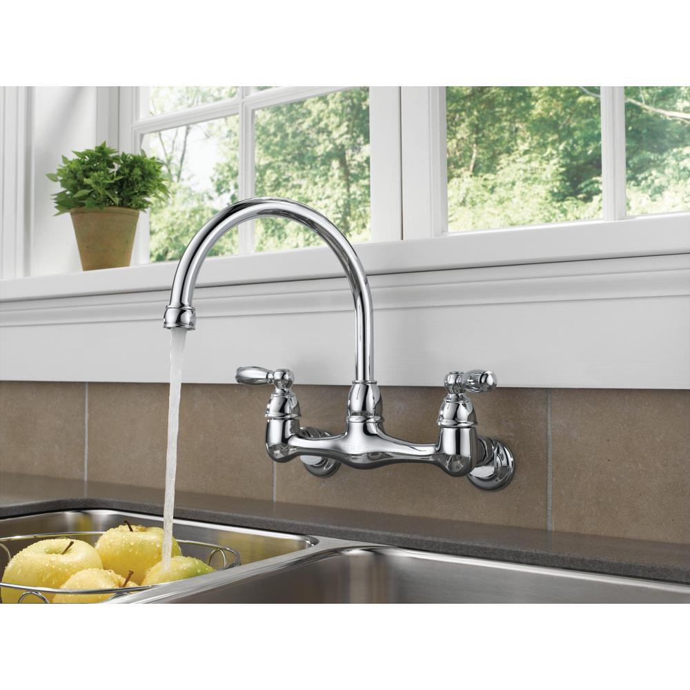 This 2-Handle Wall-Mounted Kitchen Faucet in Chrome is an easy and affordable way to update the look of your kitchen. Its simple design complements a variety of design styles. You can buy with confidence, knowing that Peerless backs this faucet with a Lifetime limited warranty.