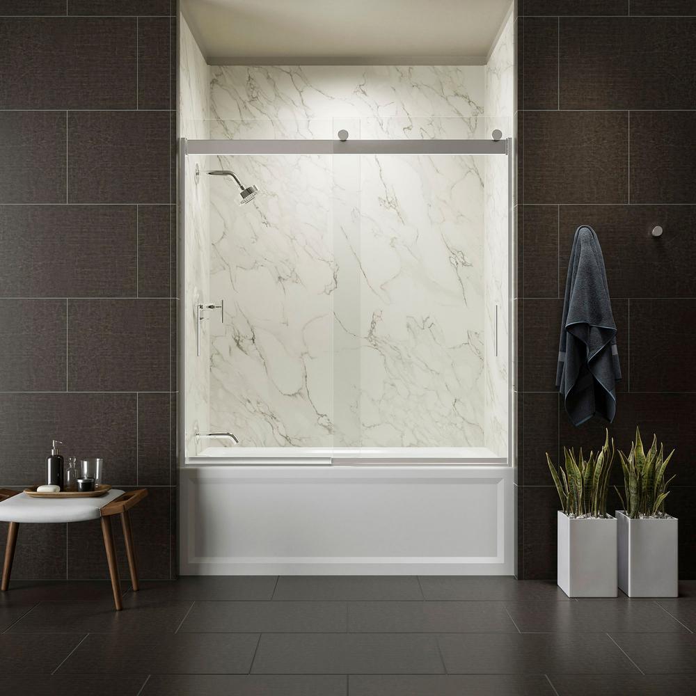 Bringing new technology and sleek style to the contemporary bath, Levity bath doors feature an innovative bypass system and roller design that provide an amazingly smooth, quiet sliding action for a difference you can feel. Levity’s unique design, including fully bypassable glass panels, makes installation easier than ever and allows for adjustability while the door is hanging. Vertical blade handles complement Levity's modern minimalist look, creating an open, inviting space for bathing.