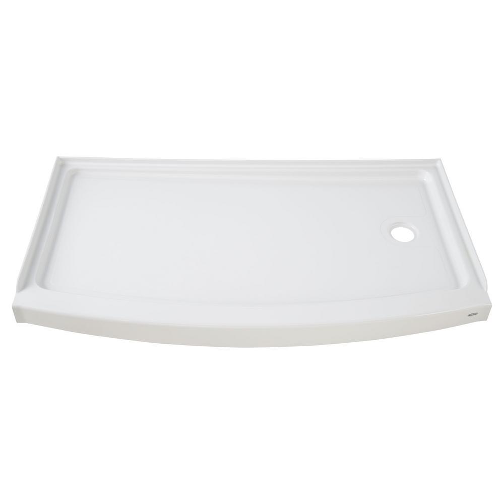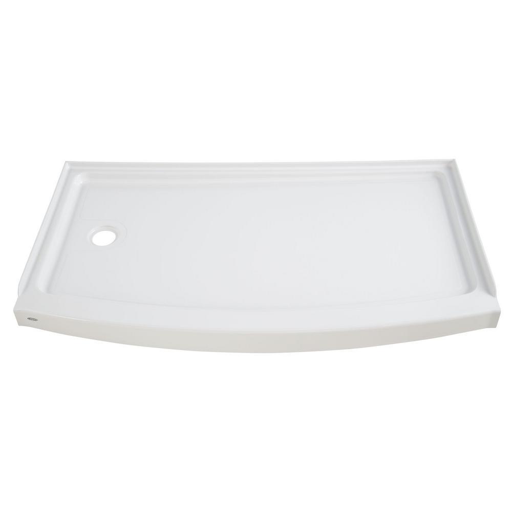 If it's time to replace a bathtub with a shower, the Ovation curved shower base is a perfect choice. Made of durable acrylic, it features a bright white, gloss finish and textured floor to help prevent slips and falls. The curved front gives you more elbow room, while the low threshold makes stepping in and out easier. Features a left hand drain outlet.