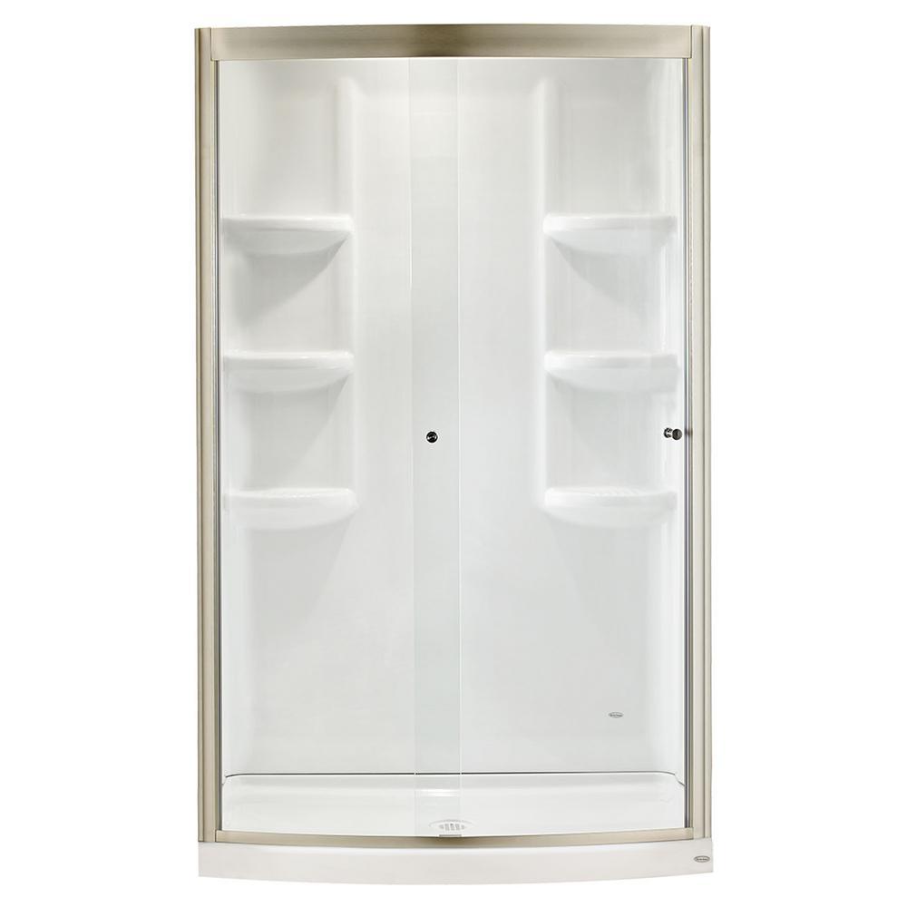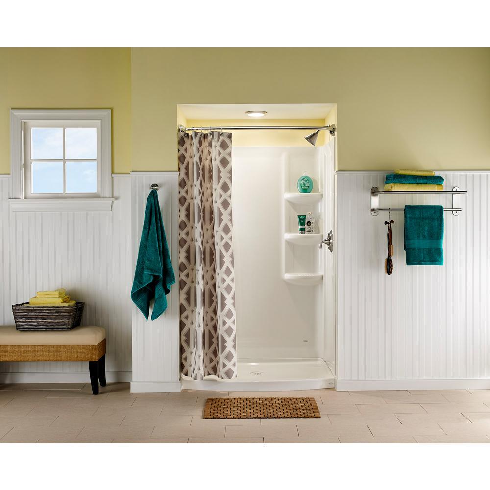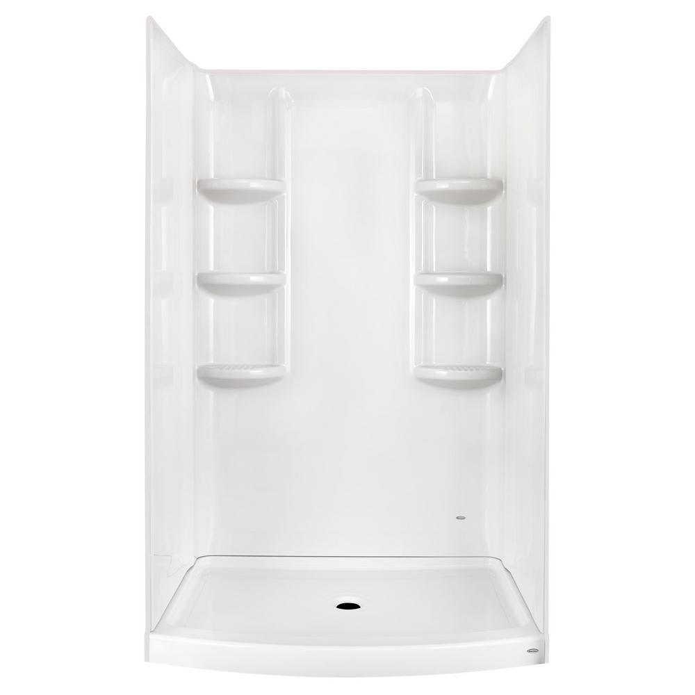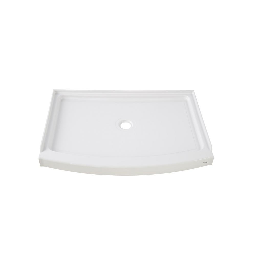 Great for adding a shower in a bathroom remodel and for smaller bathrooms, the Ovation 4 ft. x 30 in. curved shower base is made of durable acrylic with a bright white, gloss finish and textured floor to help prevent slips and falls. The curved front allows more showering room, while the low threshold makes stepping in and out easier. The optional, style-coordinated wall surrounds and shower door complete the spacious shower ensemble. Center drain outlet.