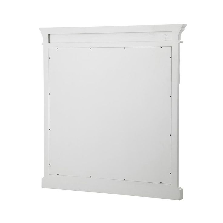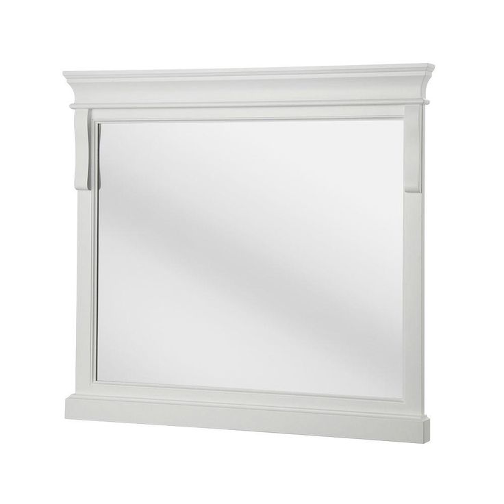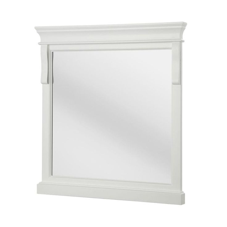 The elegant Naples 30 in. x 32 in. poplar-framed mirror has an expansive, rectangular design and sleek white finish that complements a variety of bathrooms. Subtle architectural detailing highlights the beauty. Finished in sleek white, this versatile mirror will complement a variety of bathroom styles. The rectangular mirror is designed to be hung vertically. Mounting hardware is conveniently attached.
