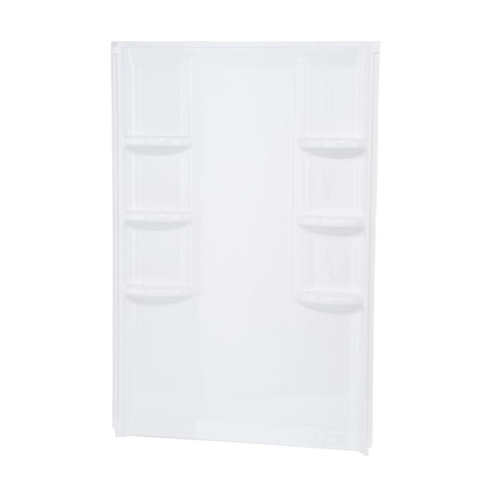 The American Standard Ovation 30 in. x 48 in. x 72 in. 3-piece Shower Wall pulls your bath makeover together. It features a bright white, high-gloss surface that brings lasting beauty to your bathroom and is easy to wipe clean. Six extra deep shelves provide you with ample space for storing personal items within reach.