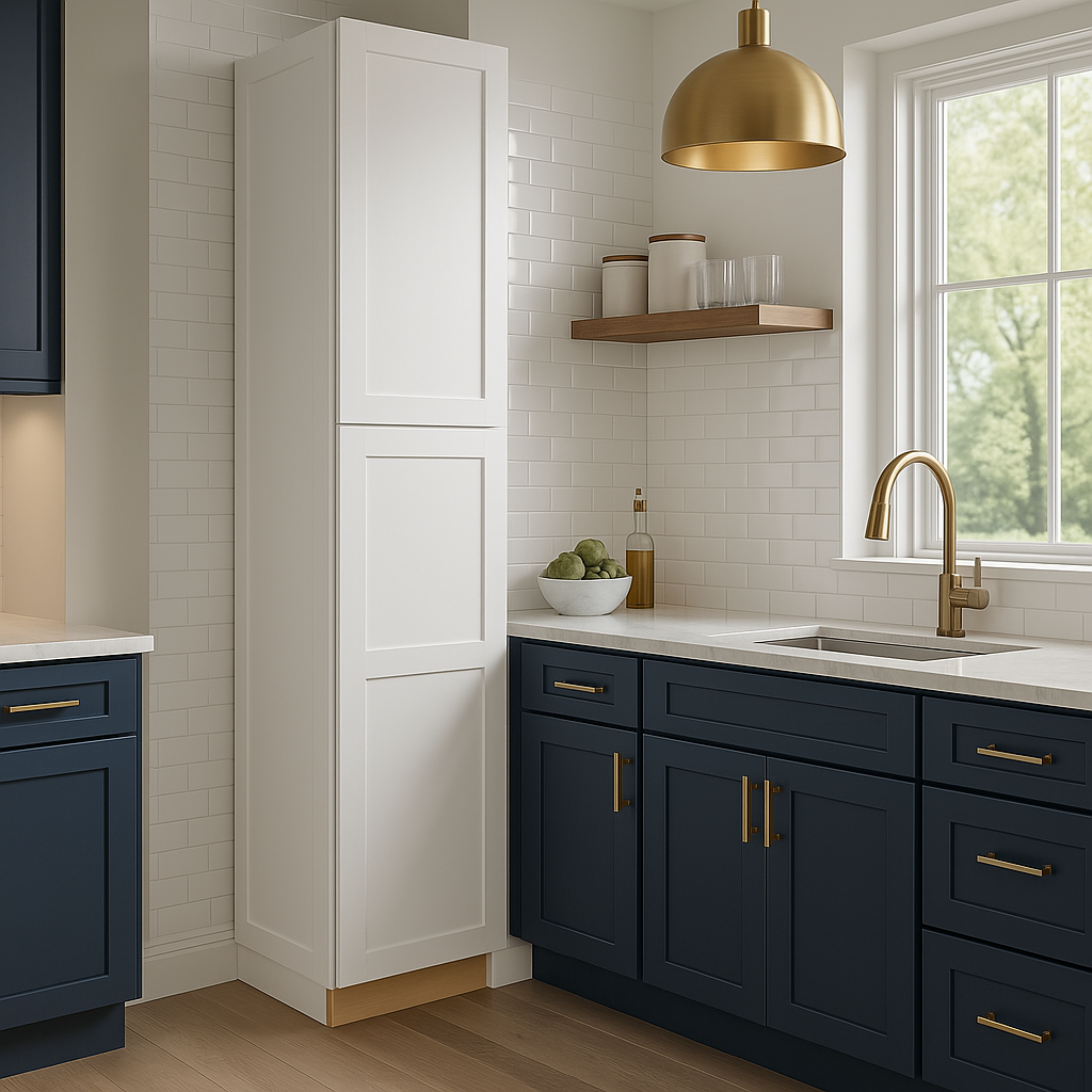 The Newport Pacific White Shaker Utility Kitchen Cabinet combines modern design with practical functionality. Featuring durable plywood construction, adjustable shelves, and a soft-close mechanism, this cabinet is perfect for enhancing your kitchen's storage and style.