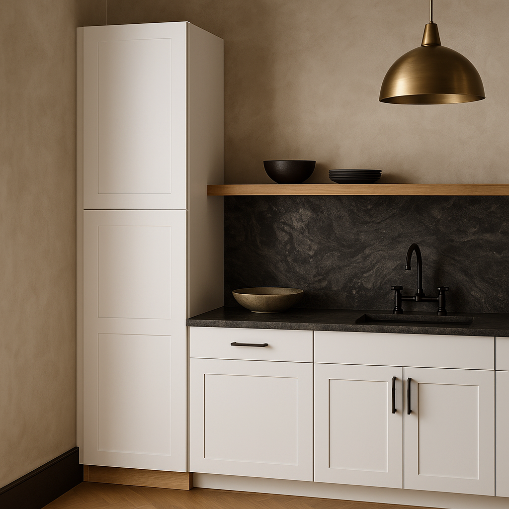 Upgrade your kitchen with the Newport Pacific White Shaker Utility Cabinet today and experience the perfect blend of style and functionality.