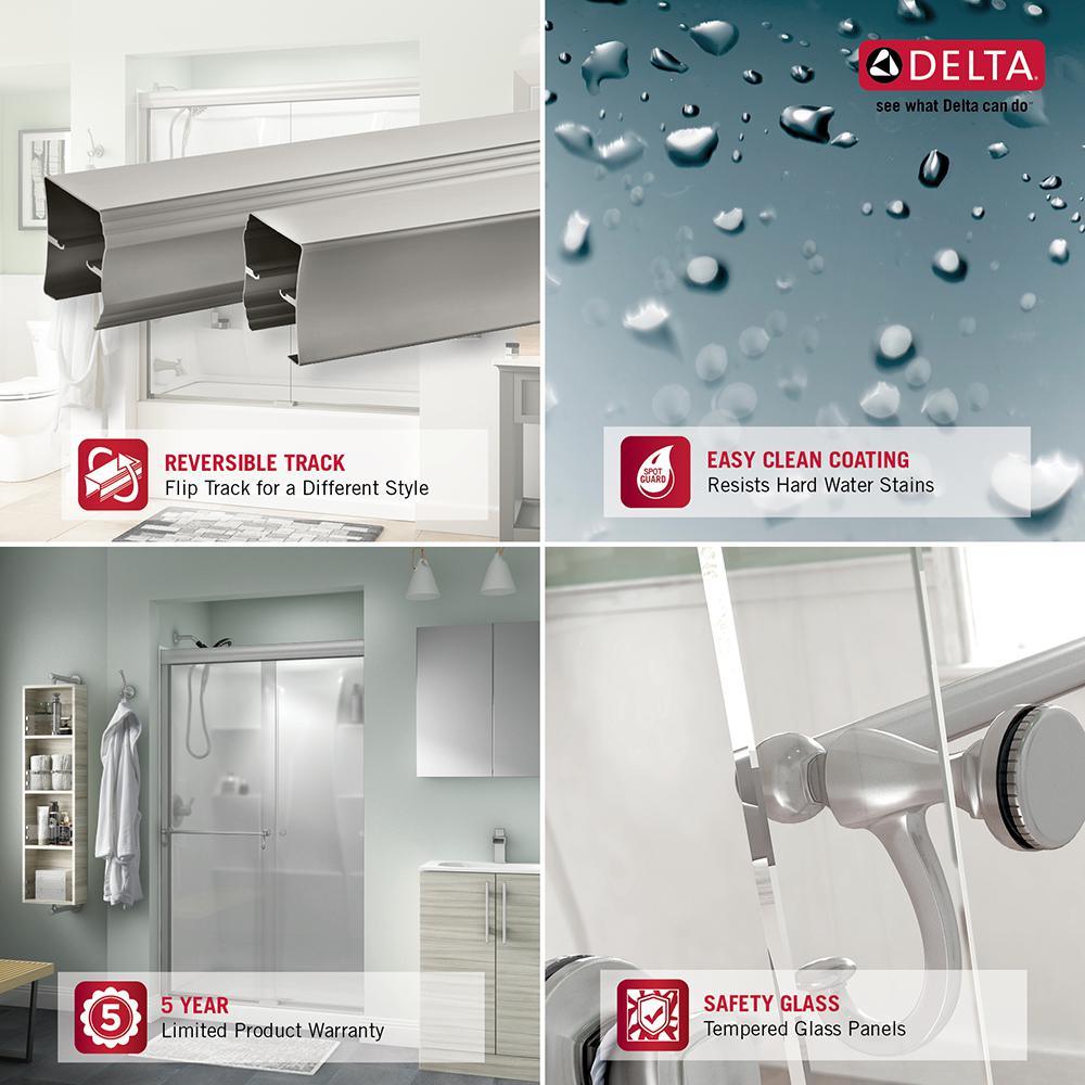 • Delta 1-2-3 custom shower door program offers a 5-year limited warranty
