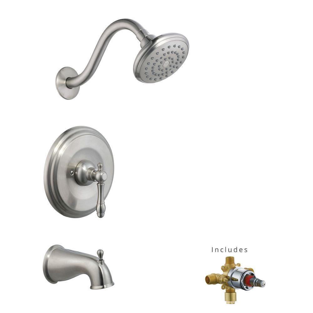 The Victorian styling of this Design House Oakmont Tub and Shower Faucet has a single handle configuration and comes in an attractive Satin Nickel finish. Constructed from a brass valve body with zinc alloy handle and stainless steel escutcheon. This faucet features a ceramic disc cartridge and brass waterways, so that with its 2.0 Gal. per minute at 80 PSI pressure balanced flow rate you are ensured of steady water flow even after years of everyday use. WaterSense labeled, ensuring that showerhead performs as well or better than other less efficient non-labeled showerheads. Traditional faucets have average lifespan of 1-5 years, but this ceramic disc faucet can last up to 30 years and the ceramic disc provides protection against corrosion in the water valve. Also features an easy-clean ABS showerhead, simply wipe the rubber spray nozzle with your finger or a sponge to clean away any hard water deposits and prevent lime scale build-up. This tub and shower faucet was manufactured in strict compliance with all government standards, and all materials used in its manufacture are of industry standard quality.
