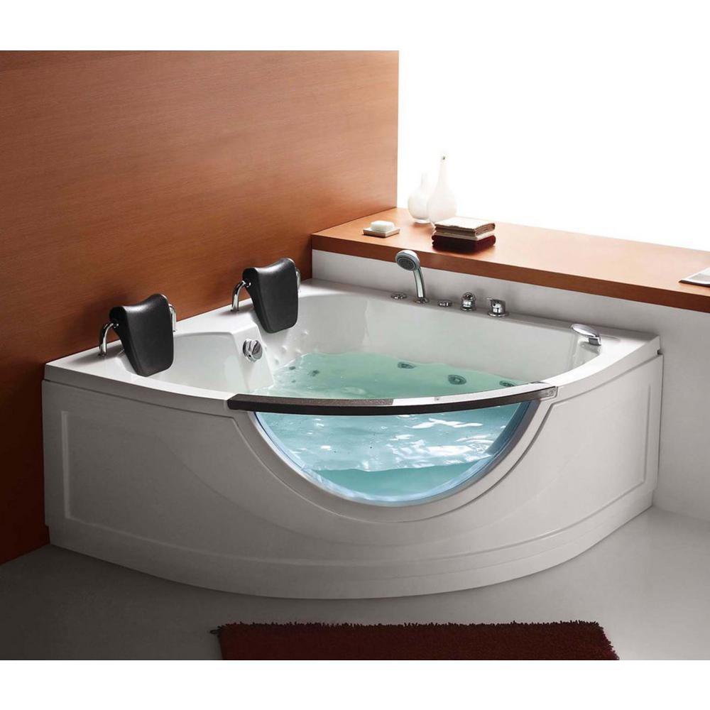 Create a relaxing spot for two right in your own house. Introducing Homeward Bath's Luxurious corner rounded heated Whirlpool bathtub for two people. This tub is freestanding and standing on leveling feet that make the installation easy.