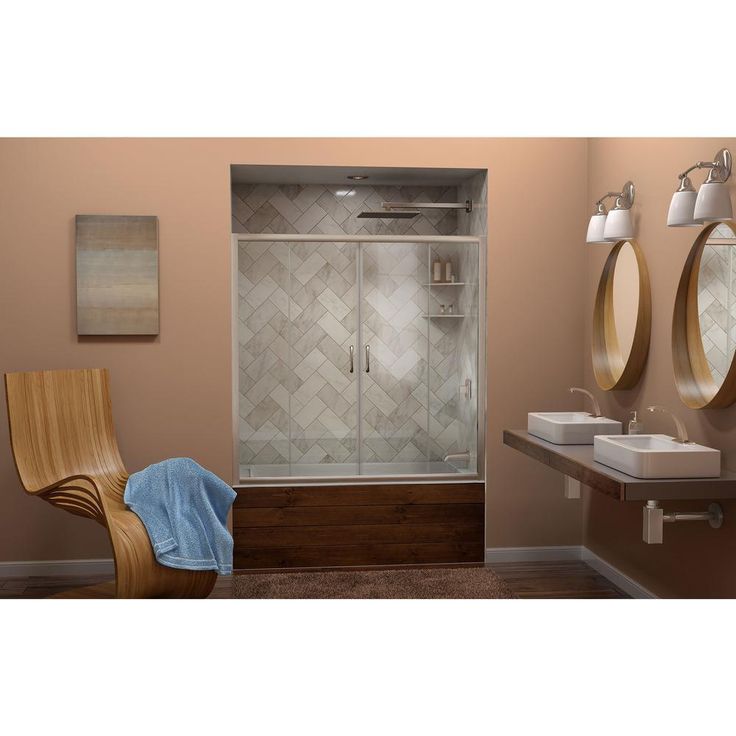Visions frames the bath with sleek, luminous planes that glide open to a welcoming center entry. The brushed nickel hardware punctuates the clear glass with refined restraint, letting tile patterns shine through. Style it with warm neutrals and layered textures to accentuate its serene symmetry. It’s a polished essential that elevates everyday rituals into a quiet luxury.