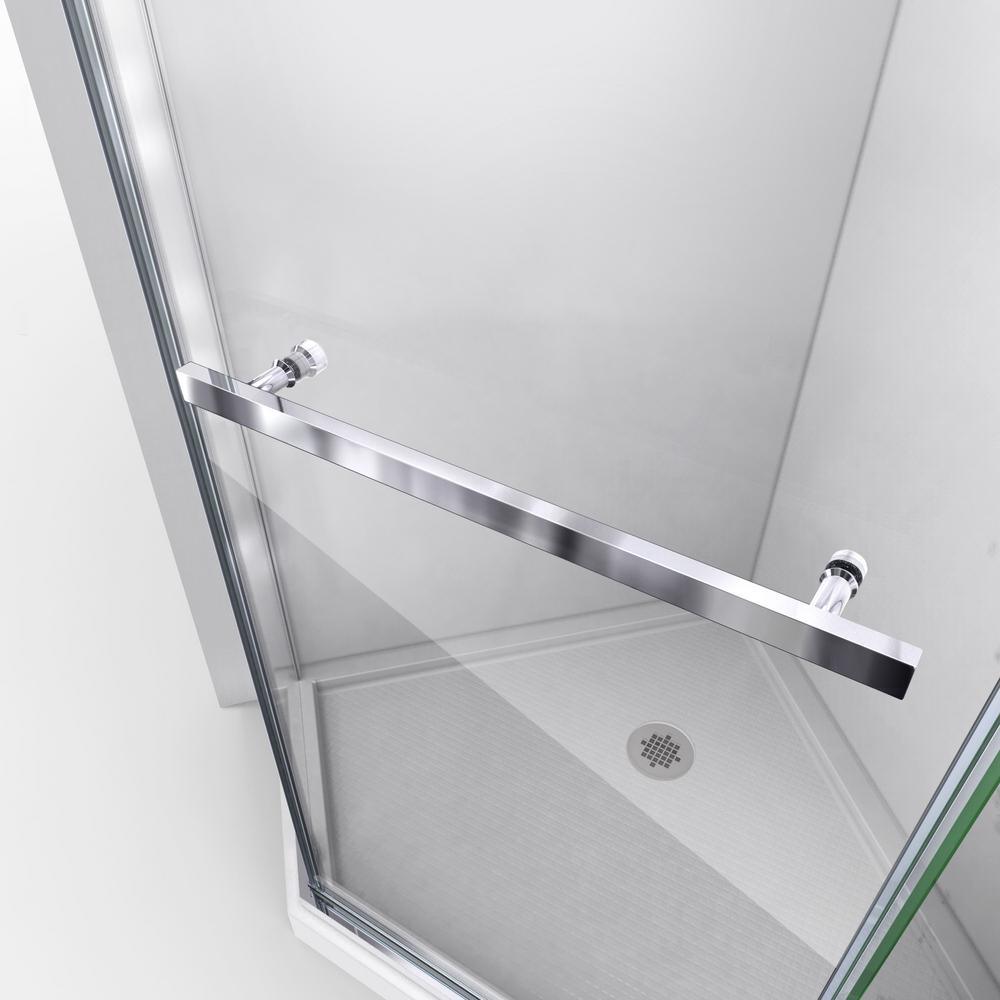 A corner-fitting neo-angle shower enclosure that maximizes space with a clean, semi-frameless design. Features 3/8 in. tempered glass with ClearMax coating and durable stainless steel pivot hardware for a watertight, stylish upgrade.
