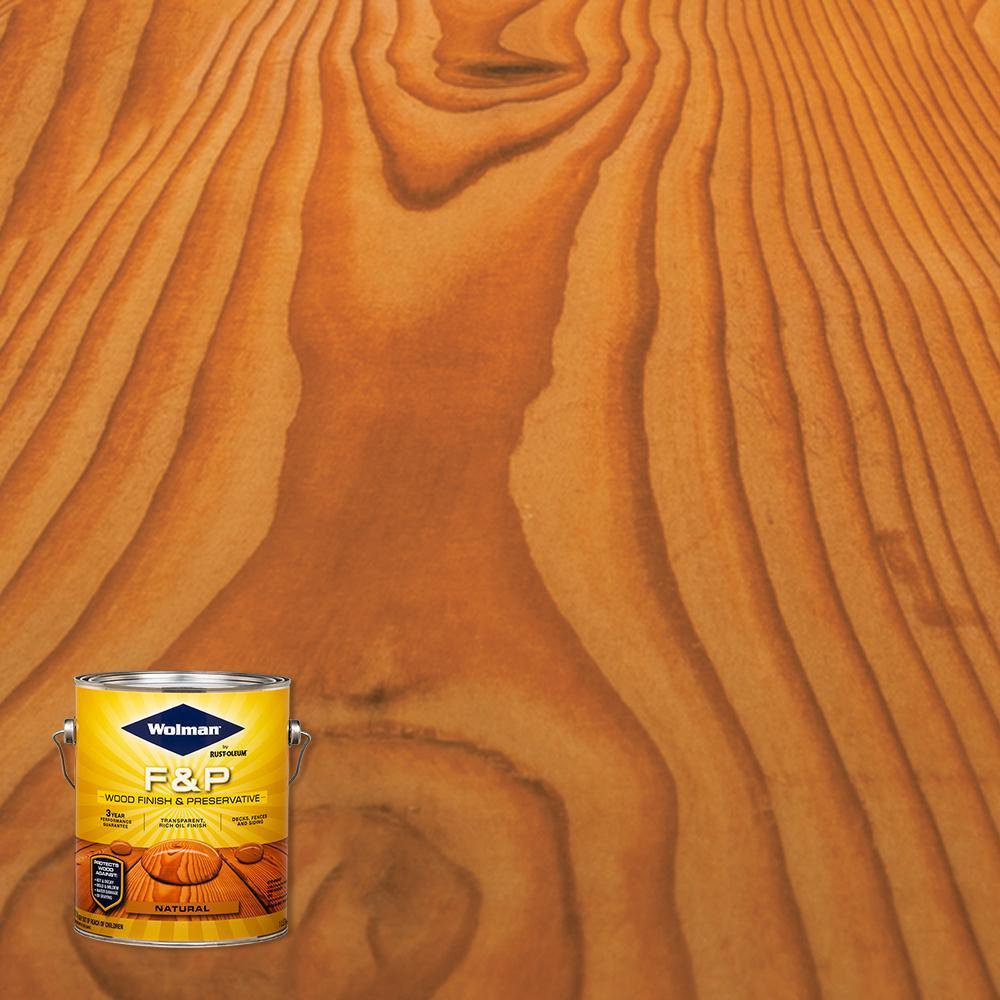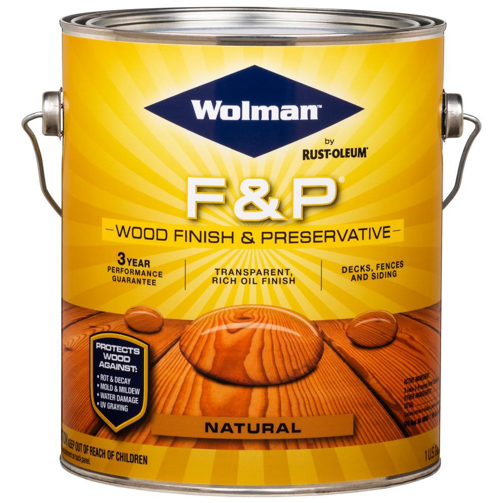 Regular price $121.25Wolman 1 gal. F&P Natural Exterior Wood Stain Finish and Preservative is an oil-based wood finish that provides new or weathered wood with UV and water repellent protection. Protect against fading and graying. Provide transparent color in natural wood tones that reveal and highlight natural wood grain and texture.