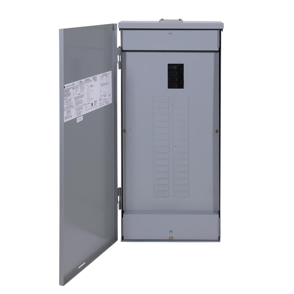 The GE PowerMark Gold 200 Amp 32-Space 40-Circuit Main Breaker Outdoor Load Center Contractor Kit is pre-packaged with a selection of circuit breakers. The UL-listed load center has holes rated 100% split neutral on each side that are compatible with #14-4 wire. The breaker box is a single-phase, 3-wire unit with a factory-installed main breaker. The center is designed and built for faster installation and a more dependable performance. This unit is compatible with GFCIs, AFCIs and standard circuit breakers.