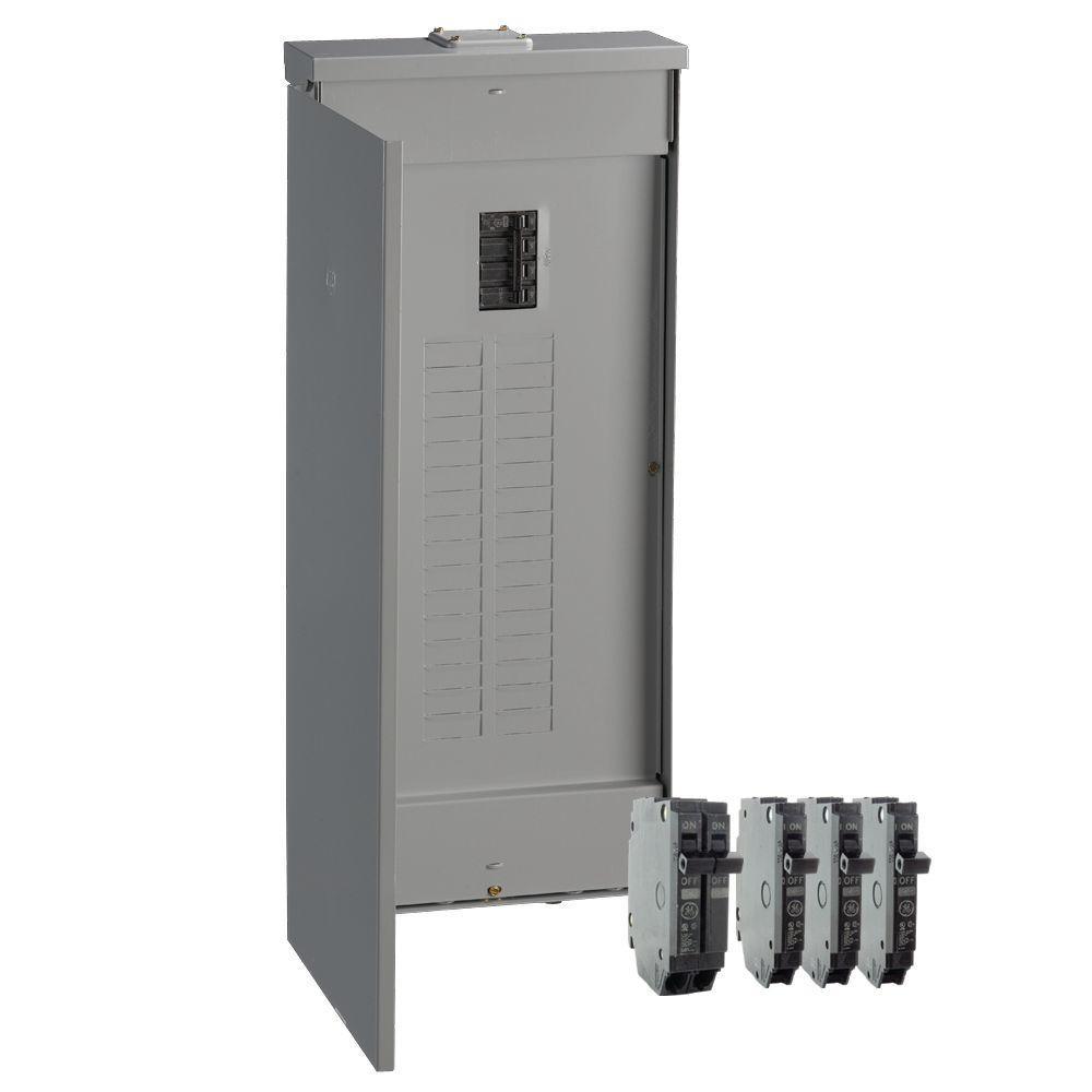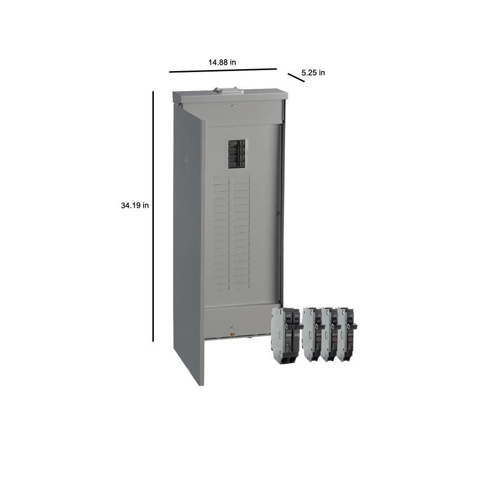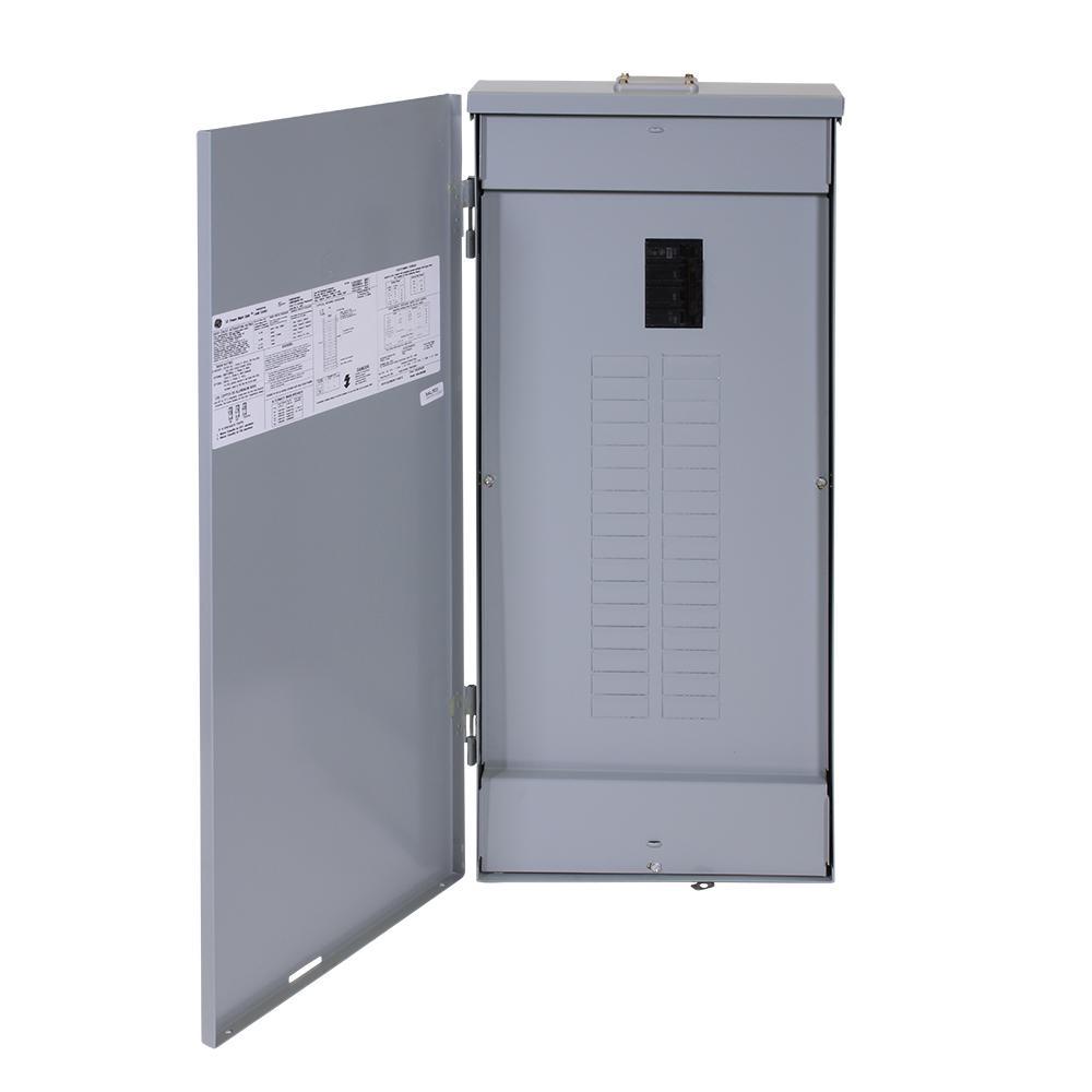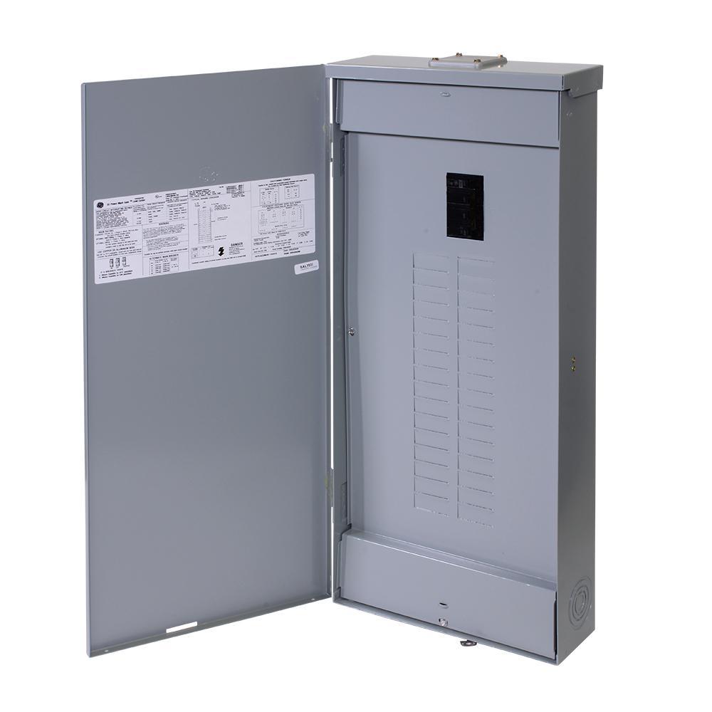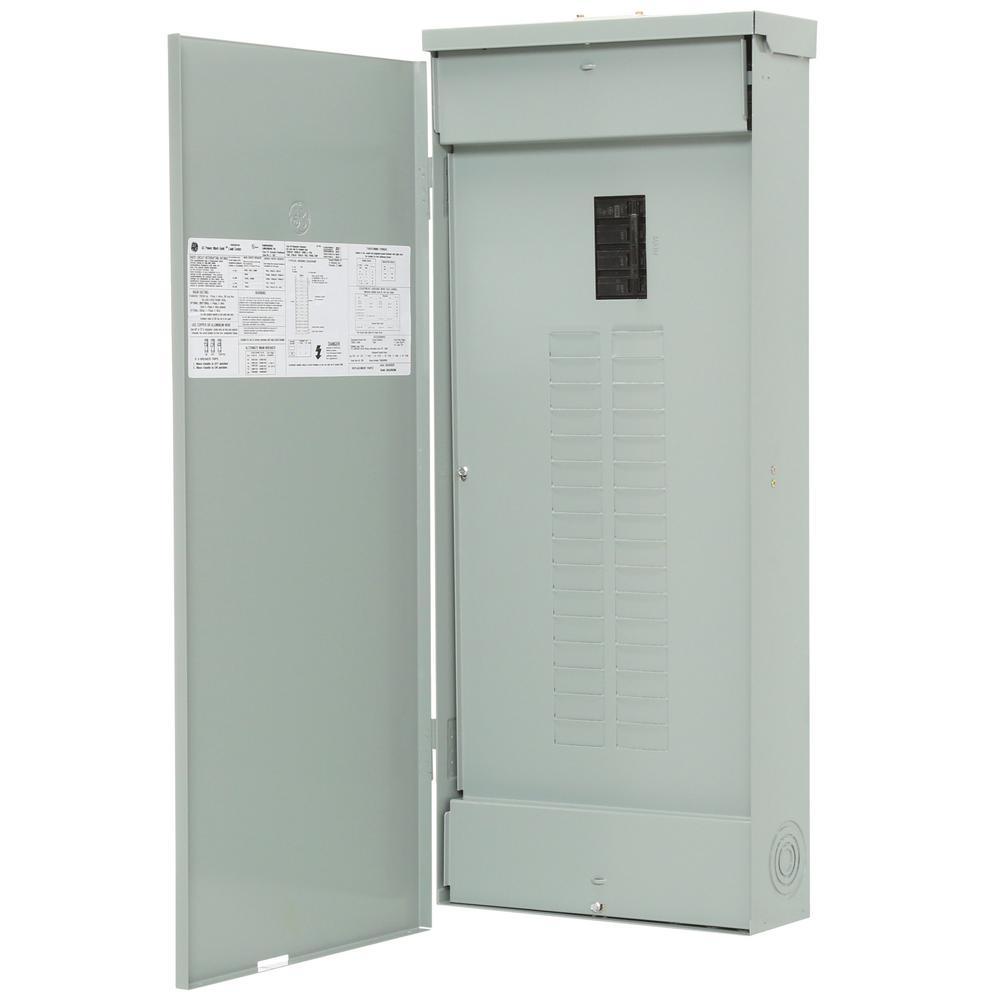 The GE PowerMark Gold 200 Amp 32-Space 40-Circuit Main Breaker Outdoor Load Center Contractor Kit is pre-packaged with a selection of circuit breakers. The UL-listed load center has holes rated 100% split neutral on each side that are compatible with #14-4 wire. The breaker box is a single-phase, 3-wire unit with a factory-installed main breaker. The center is designed and built for faster installation and a more dependable performance. This unit is compatible with GFCIs, AFCIs and standard circuit breakers.