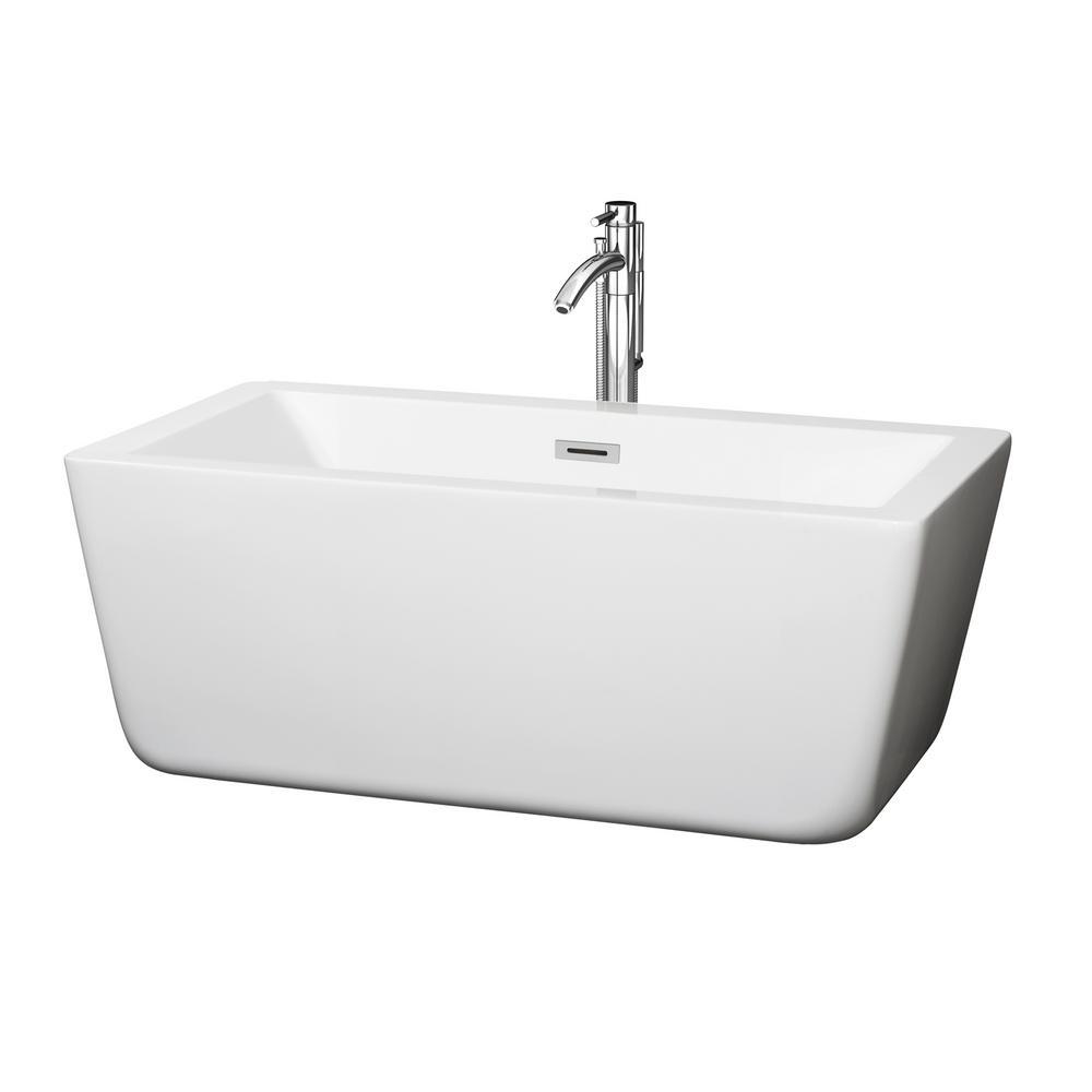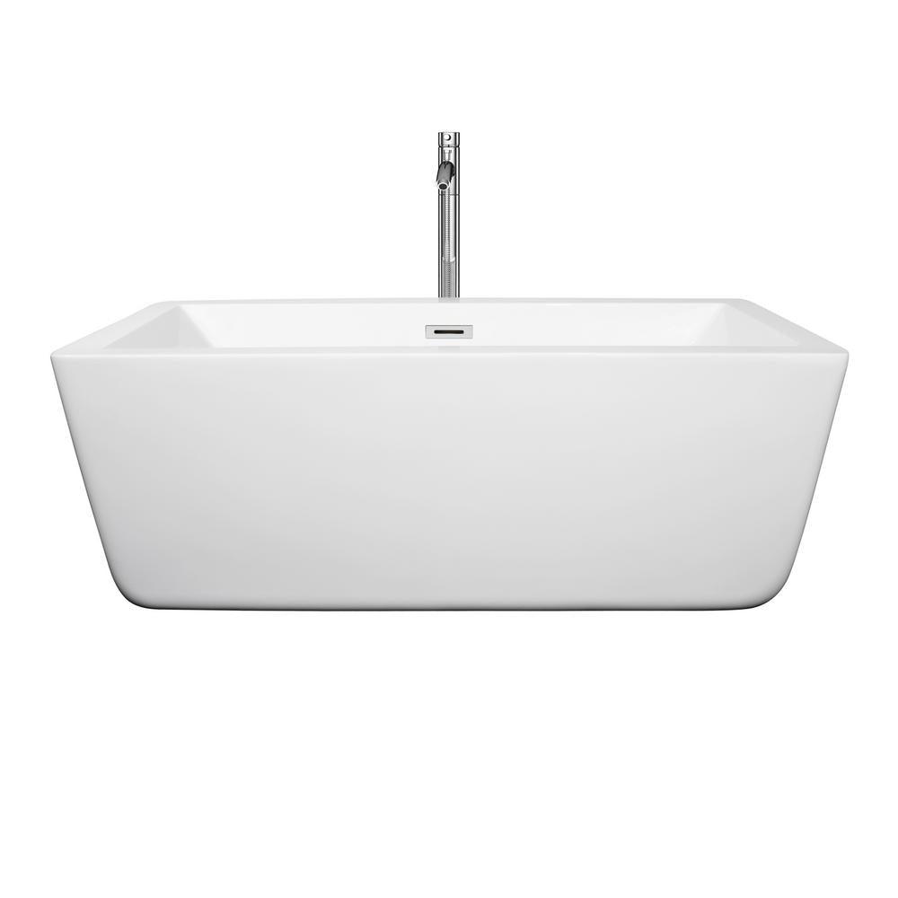 Laura 58.75 in. Acrylic Flatbottom Center Drain Soaking Tub in White with Floor Mounted Faucet in Chrome