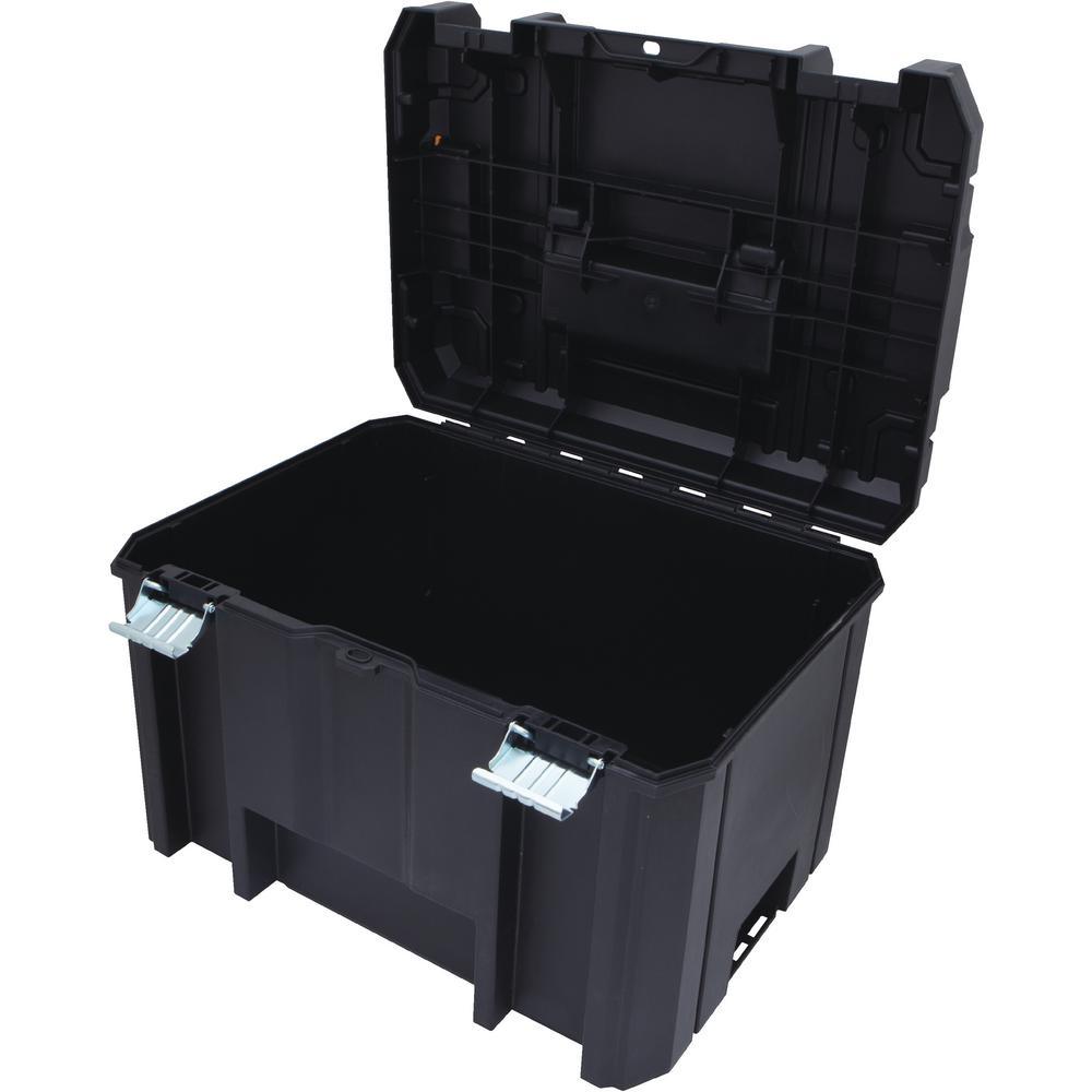 DEWALT has a well-earned reputation for designing and manufacturing many of the world’s most reliable and best-performing professional-grade power tools. And every product is forged with DEWALT ’s unwavering commitment to producing tools and accessories that can withstand harsh jobsite conditions and meet the unyielding day-to-day demands of professional contractors. And now, DEWALT has applied that same no-nonsense, GUARANTEED TOUGH philosophy to its new line of heavy-duty storage products. The DEWALT TSTAK system is an innovative platform that stacks on top of each other. This deep box features removable compartments and a clear lid.
