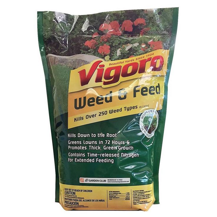 Vigoro 7 lbs. Weed and Feed Lawn Fertilizer delivers powerful weed control and robust lawn nourishment in one easy step. Its slow-release nitrogen formula feeds your lawn for up to 8 weeks while eliminating over 250 types of weeds, including dandelion and clover. Perfect for spring or fall application, this product ensures a lush, green, and weed-free yard.
