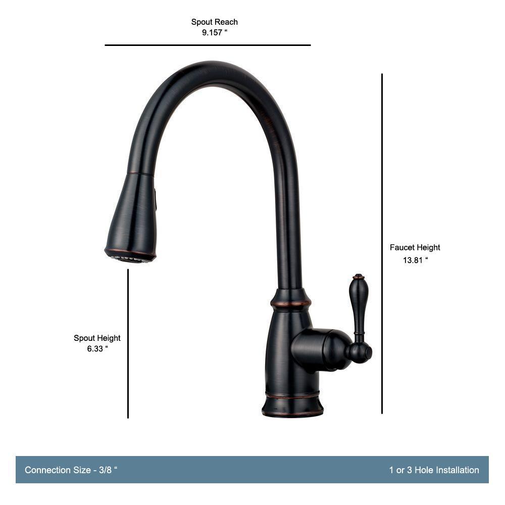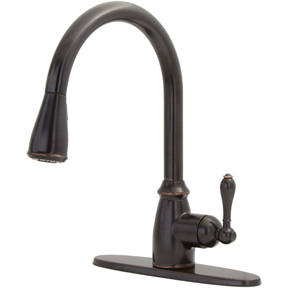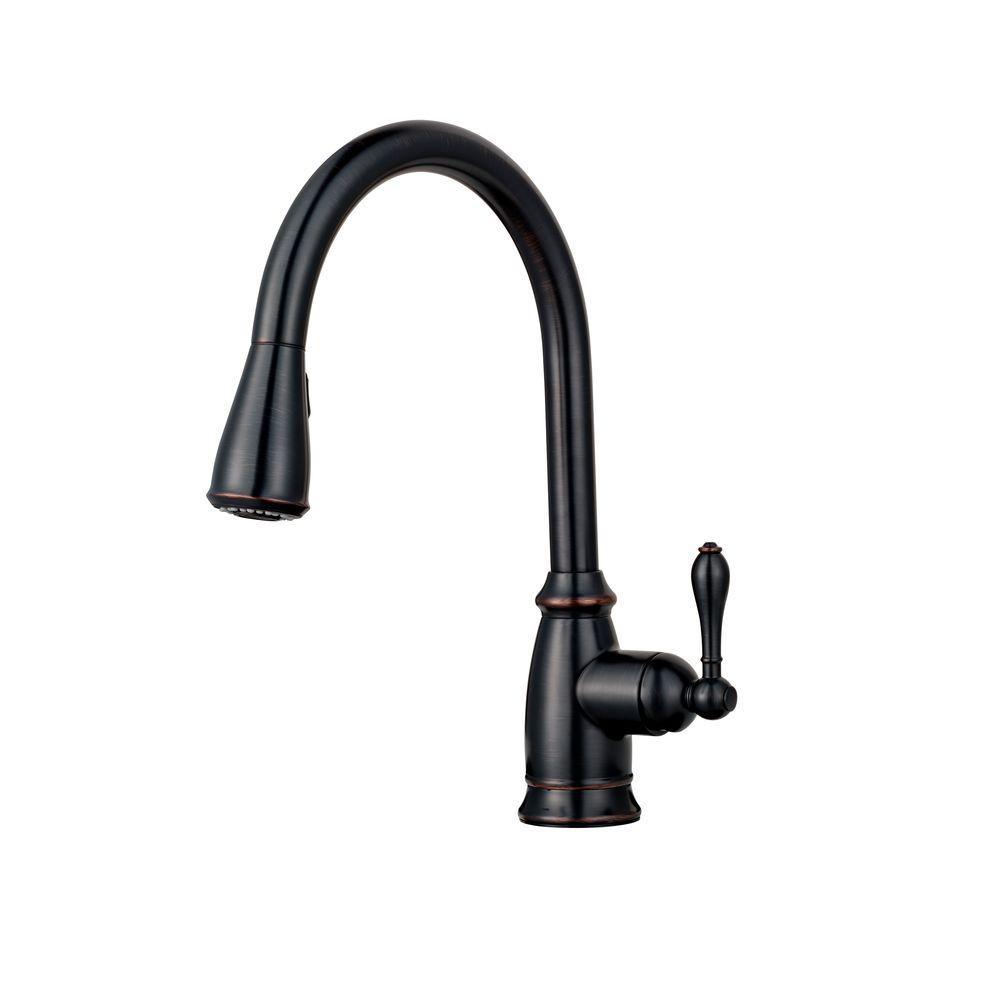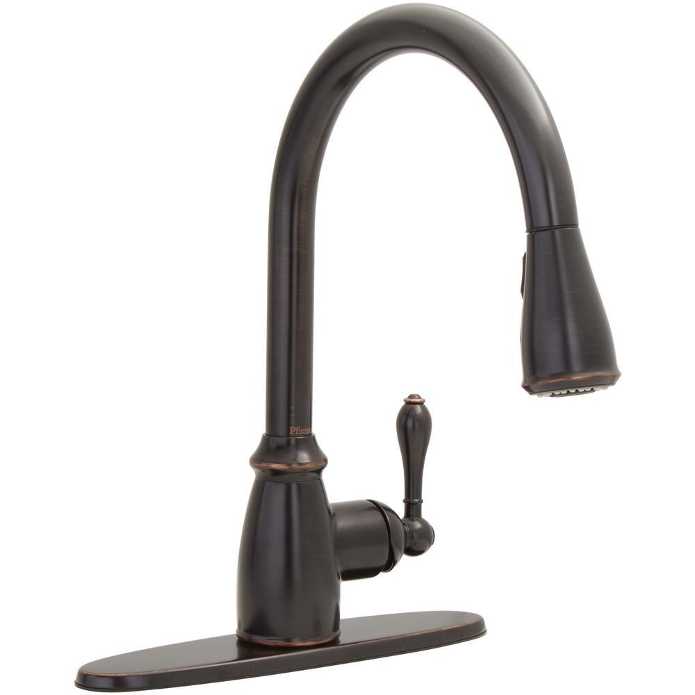 The Pfister Canton Single-Handle Pull-Down Sprayer Kitchen Faucet in Tuscan Bronze inspires easy living. It offers three spray options that are accessible with just the touch of a button, making washing and rinsing easier than ever. This classic-looking faucet features Pforever Seal advanced ceramic disc valve technology for a never-leak guarantee.