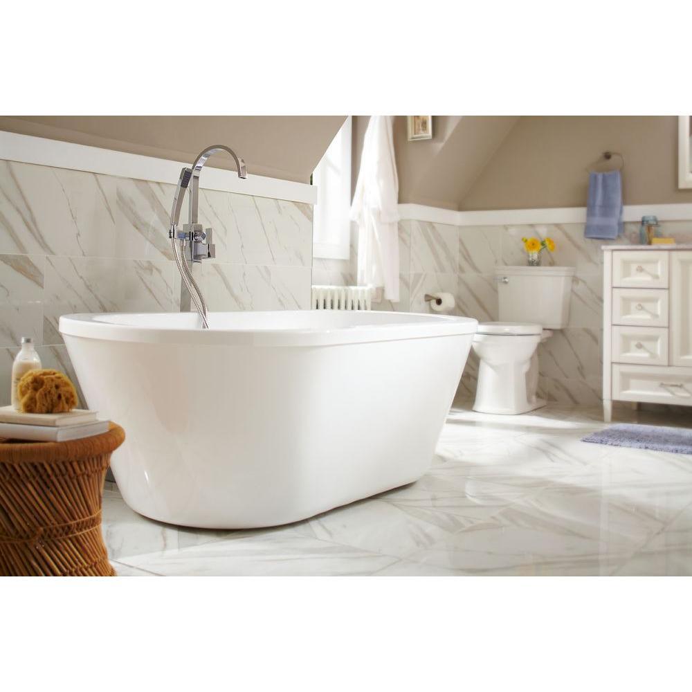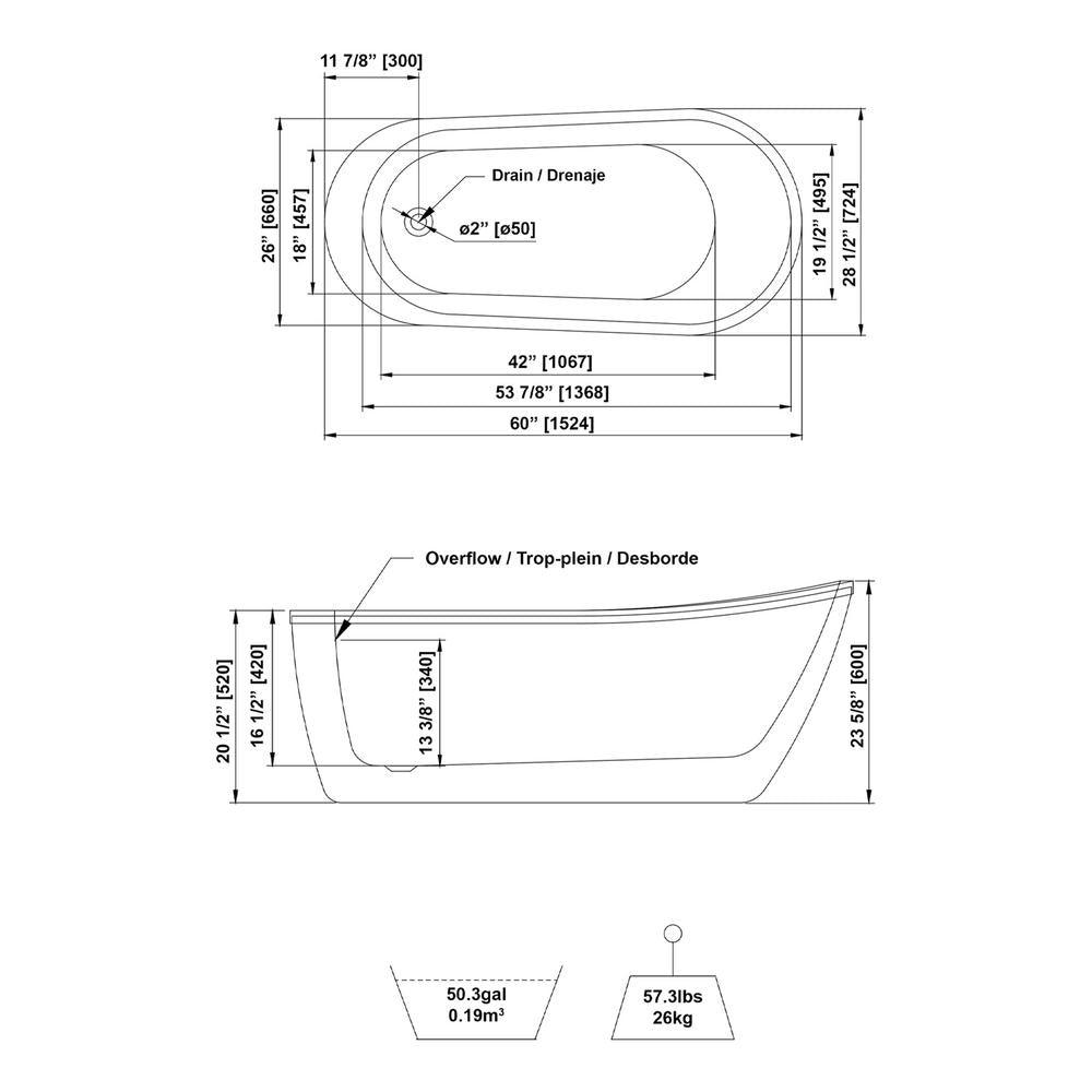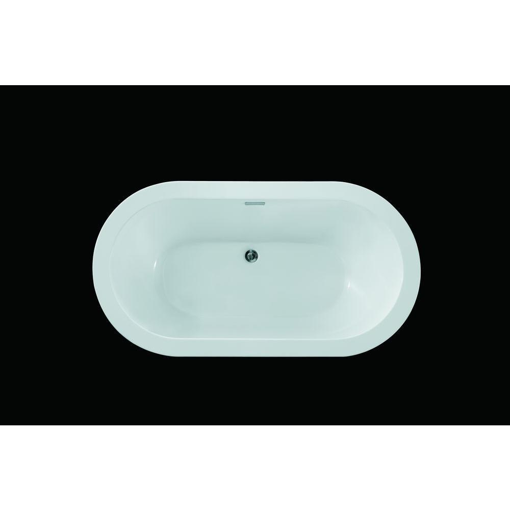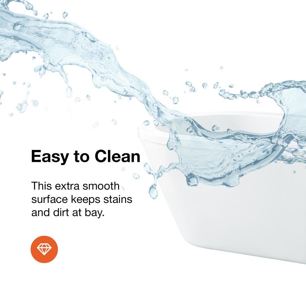 Achieve the timeless, modern look with the Schon Colton 63 in. Freestanding bathtub. The size makes it a perfect solution for smaller bathrooms. The design is constructed of high-quality acrylic reinforced with fiberglass with a pre-installed overflow drain and leveling legs for an easy installation.