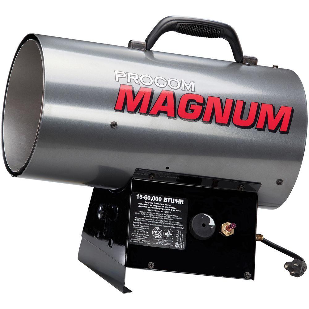 This ProCom Heating’s Portable Outdoor Propane Forced Air Heater provides a high level of heat output buy circulating heat throughout an area. This commercial grade forced air heater is made with heavy duty grade components for long lasting use. It is simple to use: just plug it into a standard household outlet and connect to a propane tank. Perfect for worker comfort, framing, dry walling, curing concrete, remodeling, automotive, agriculture, sporting events and many DIY projects.