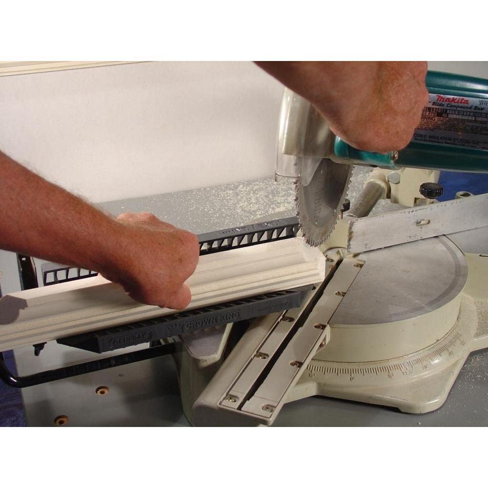 Removes annoying trial and error and streamlines the creation of crown molding since crown stock is orientated in the crown king jig the same way it is installed so it's easier to visualize and plan cuts, no flipping stock or inverting angles