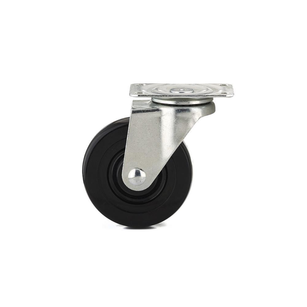 4 in. General-Duty Rubber Swivel Caster has corrosion-resistant zinc finish. The Soft tread combines with hard core for quiet movement and cushioned ride and the single row of hardened ball bearings in a large-diameter lubricated raceway makes the good quality of this product.