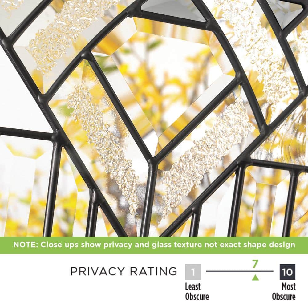 A: It features Chatham decorative 3/4 oval triple-pane tempered glass with a privacy rating around 7 (on a 1–10 scale).
