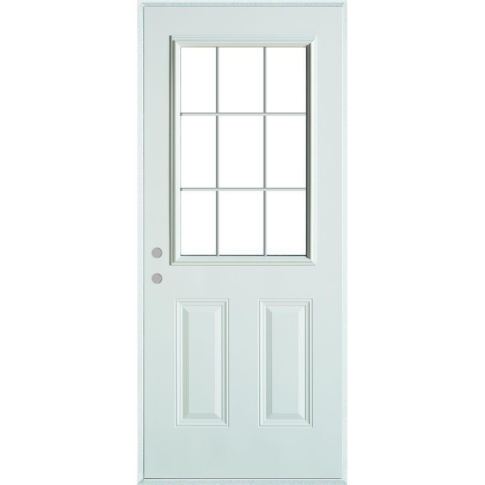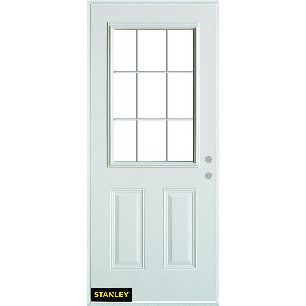 Stanley Doors helps you create an entrance that is an extension of your unique personality. Our products offer lasting, elegant entryways with an emphasis on style, security and, energy efficiency. The versatility and design of the Stanley Door 9 Lite 2-Panel Painted Steel Entry Door ensures that it will suit any homeowner's style, while enhancing the look of your home. The 9 lite internal grille adds definition to this sturdy steel pre-hung entry door, while its 2-panels and clean lines will modernize your home's entrance. In addition to the beauty of our doors, you could be sure that once installed, they are simple to maintain and care for and are backed by Stanley's limited lifetime warranty to boot. Stanley Doors are dedicated to manufacturing the highest value products.