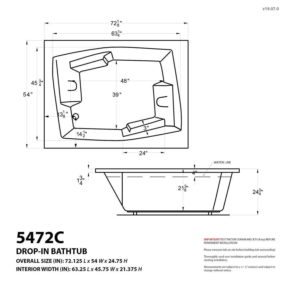 Basin dimensions: 63.25" L x 45.75" W