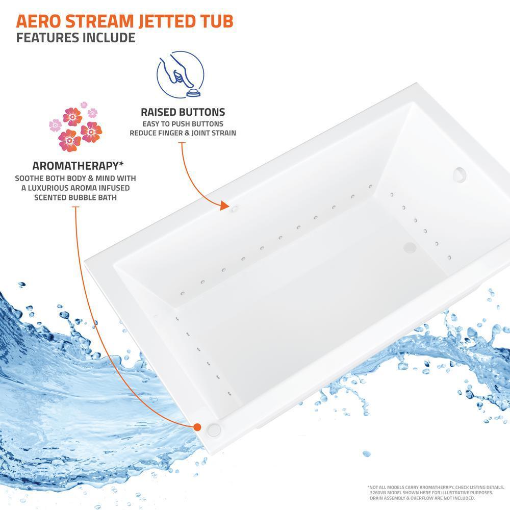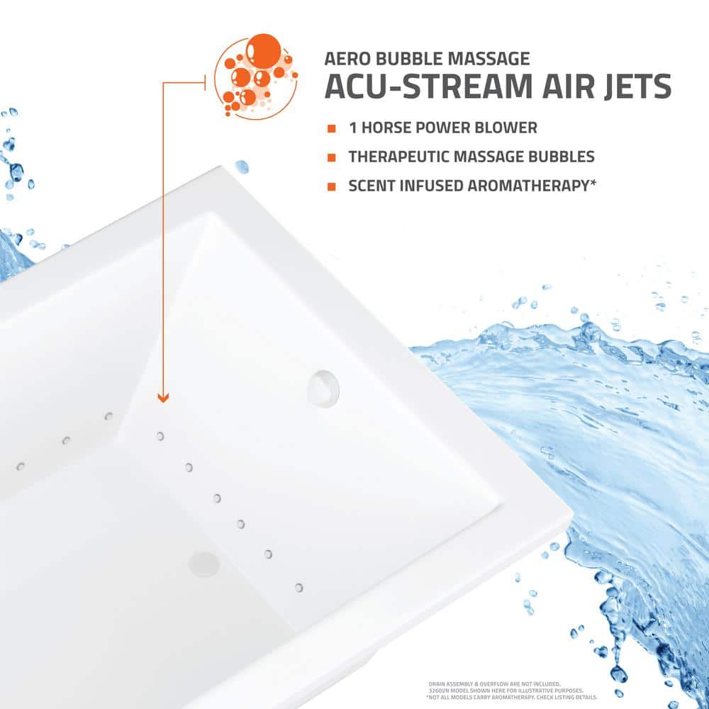 This Universal Tubs Sapphire drop-in air bath delivers a soothing aero-therapeutic massage in a sleek rectangular form. Crafted from glossy white acrylic with fiberglass reinforcement, it features 31 Acu-Stream air jets and aromatherapy capability for spa-like relaxation at home.