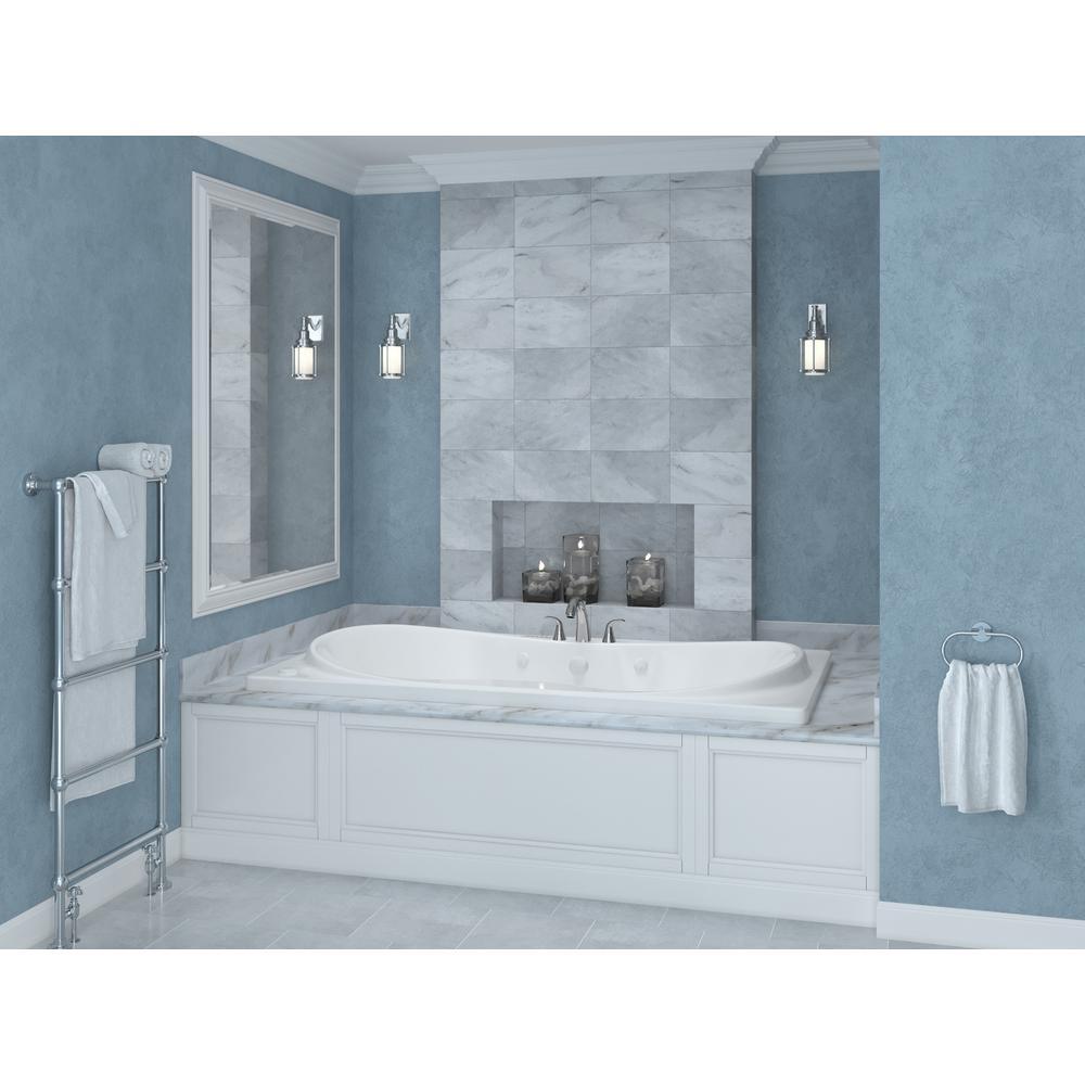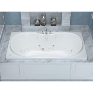 Q: How is the tub installed? A: It is a drop-in bathtub designed to be set into a deck or surround; professional installation recommended.