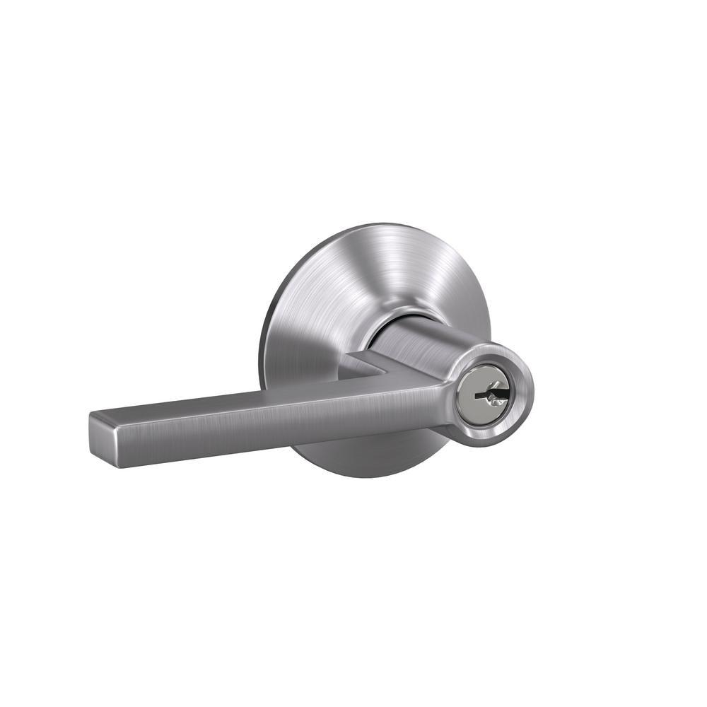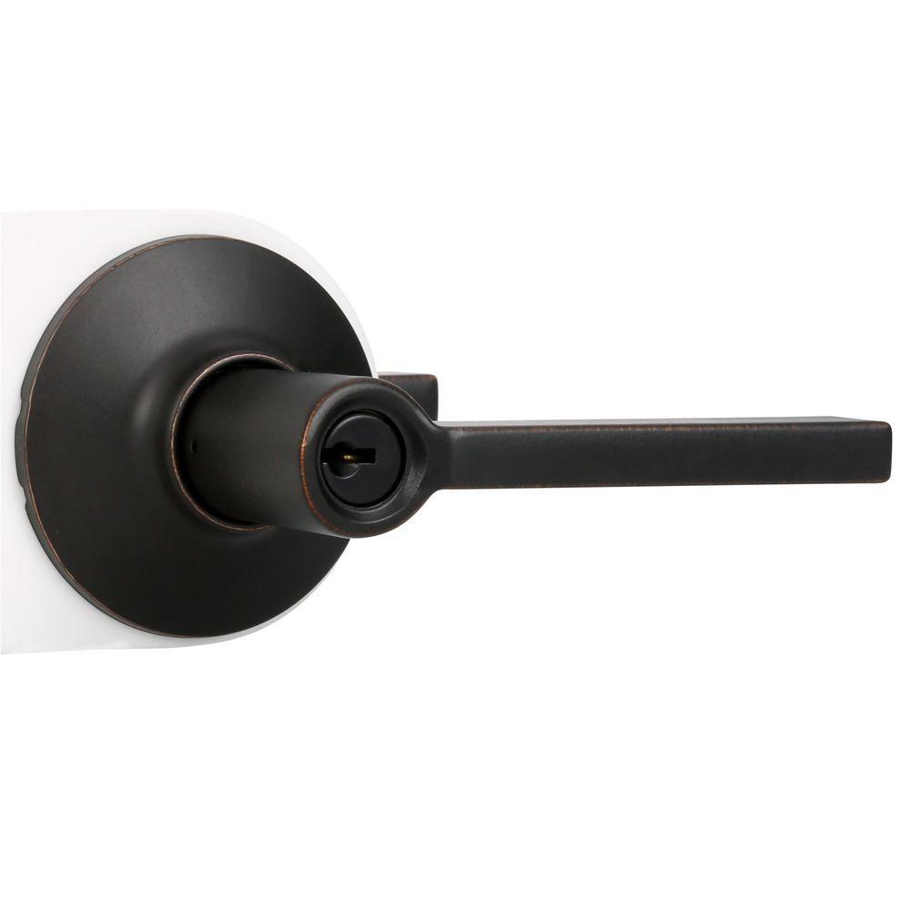 The Schlage Latitude Aged Bronze Keyed Entry Door Lever is perfect for use on exterior doors where extra security is needed. The Latitude lever features a minimalistic design with clean lines and rectangular features. Our Aged Bronze finish features warm, copper tones that break through its darker, aged exterior. The lever unlocks when the door is opened from the inside, allowing you to leave quickly and conveniently and re-enter easily. Plus, it was designed and tested with strength and durability in mind.